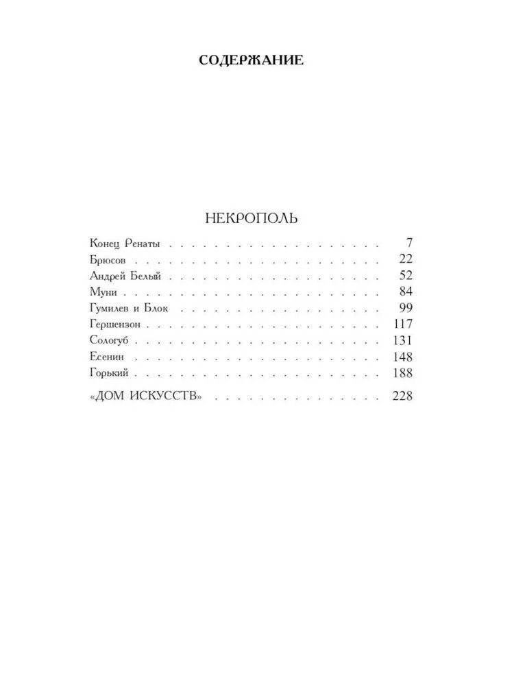 «Некрополь», что в переводе с греческого значит «мертвый город», — сборник выросших из некрологов историко-литературных очерков, посвященных главным представителям эпохи символизма. Размышления о судьбах русской культуры сменяются описаниями литературного быта, окружавшего Владислава Ходасевича в его московский период. Как историк литературы он стремится быть беспристрастным, но все же не может полностью отстраниться от символистского мировоззрения, отчего сборник обретает черты дневника, а в очерках сквозь портреты «замечательных людей» проступает и образ самого автора. |