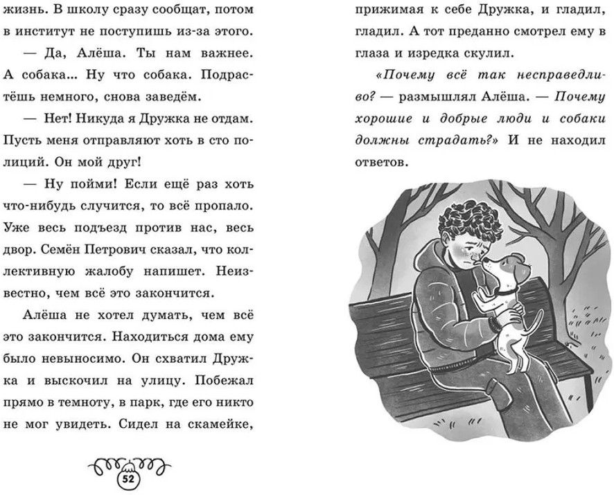 Серия: Пушистые истории После переезда застенчивый мальчик Алёша так скучал по своим старым друзьям, что всё время сидел дома. Тогда родители решили подарить ему собаку. Смешной, ласковый и общительный щенок Дружок на первой же прогулке устроил переполох во дворе: потянул за уши бассета Пулю, случайно утащил сумку у Клавдии Петровны, испортил причёску чемпионке Леопольдине и до ужаса запугал трусливого Чихуашу. На слишком дружелюбного и общительного хвостатого соседа взъелись все собачники двора! Смогут ли Алёша и Дружок вернуть доверие соседей и найти настоящих друзей? Невероятно смешная и трогательная история о доброте, заботе и, конечно, настоящей дружбе! |