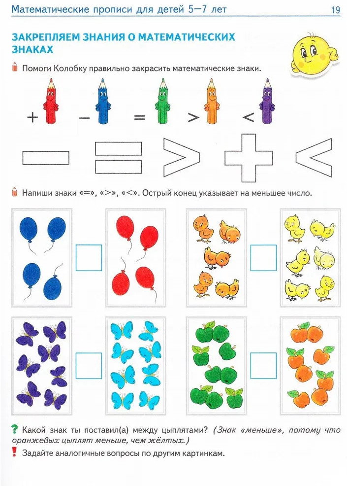 Серия: Математические ступеньки Математические прописи для детей 5-7 лет. ФГОС ДО. Предложенные в прописях задания помогут подготовить руку ребёнка к письму, закрепить полученные ранее знания, умения и навыки, а также применить их для выполнения более сложных упражнений: письмо цифр, математических знаков, геометрических фигур в тетради в клетку, рисование символических изображений предметов и т.д. В процессе выполнения заданий весёлого Колобка и его друзей-карандашей у ребёнка развиваются внимание, память, мышление — качества, необходимые для обучения в школе. |