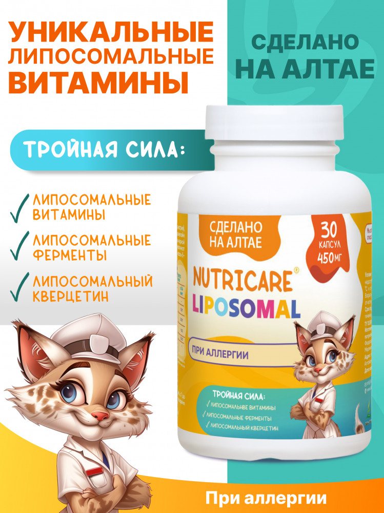 Серия: Nutricare Liposomal Витамины для детей. Комплекс при аллергии. Подарите своему ребенку радость каждого дня без аллергии! Наш продукт создан на Алтае, с заботой о вашем ребенке! Аллергия мешает вашему малышу наслаждаться весной, играми и прогулками? Чихание, зуд или дискомфорт портят настроение? Комплекс «Тройная сила» при аллергии с липосомальными компонентами — выбор заботливых мам, чтобы мягко поддерживать здоровье и комфорт вашего ребенка в сезон аллергий! |