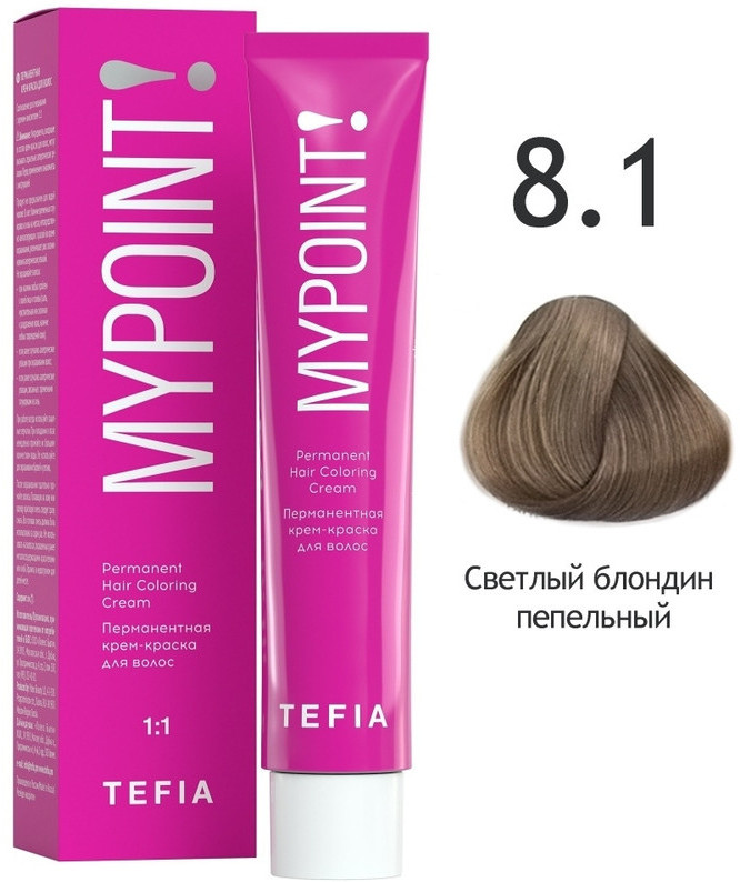 Крем-краска для волос, оттенок 8.1 Светлый блондин пепельный | Mypoint | Tefia