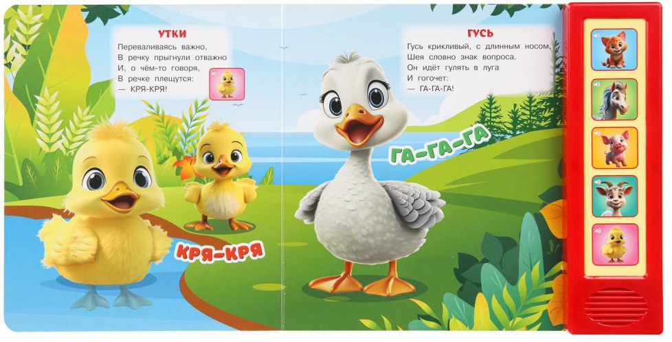 Музыкальная книга «В. А. Степанов. Жители фермы» ТМ «УМка» станет прекрасным подарком для ребёнка. Красочная музыкальная книга познакомит малыша с животными, которые живут на ферме. А песенки сделают чтение ещё более увлекательным. Ребёнок легко освоит включение звука: по нажатию на кнопку звук включится, при втором нажатии выключится. Книжка сделана из плотного картона, поэтому родители могут не опасаться за её сохранность. Благодаря компактному формату её удобно брать с собой. Игра с музыкальной книгой ТМ «УМка» расширяет кругозор и развивает: слуховое восприятие, навык чтения, фантазию, образное мышление, память и моторику. |