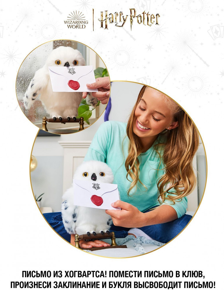 К тебе прилетела почтовая сова из Хогвартса! Узнай что ей нравится, погладь и поговори с ней! Букля умеет вращать головой как настоящая сова, машет крыльями и двигает клювом. Сова умеет распознавать тон твоей речи! Она будет спокойно или буйно реагировать на тихий или громкий голос. Букля понимает, когда перья взъерошены. Она не любит быть лохматой и реагирует на это. Причеши или пригладь ее перья и сова будет щебетать. Можно написать письмо и положить конверт в клюв букле, сова выпустит конверт после особого взаимодействия. |
