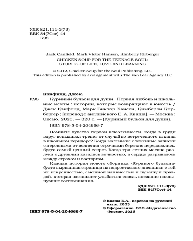Куриный бульон для души. Первая любовь и школьные мечты. Истории, которые возвращают в юностьМарк Виктор Хансен, Джек Кэнфилд, Кимберли Кирбергер новинка