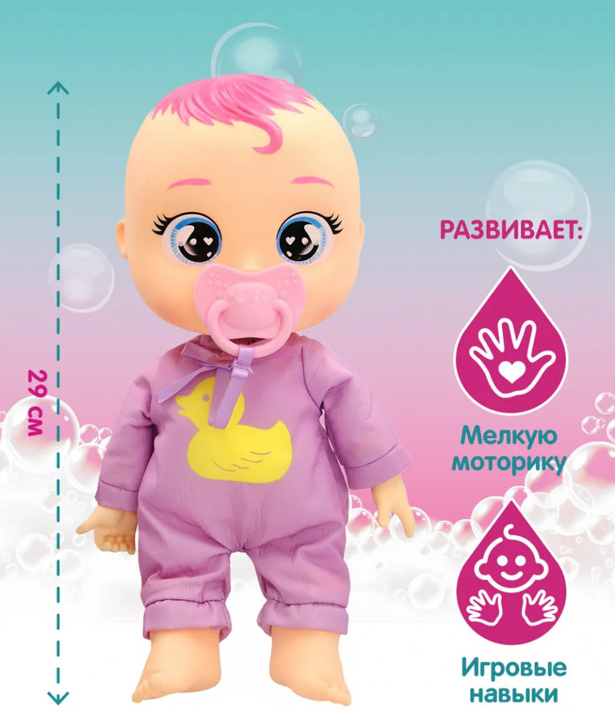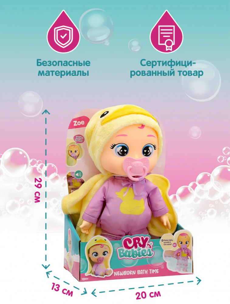 Серия: Время купания Смотри, как Зои плещется в воде! Она обожает игры во время купания и готова плескаться снова и снова. Наполни ванну водой и наблюдай, как проявляется волшебный рисунок! Малышка Зои нуждается в твоей заботе! Ей нравится, когда её обнимают, купают и играют с ней. Используй леечку, аккуратно искупай Зои и поиграй с уточкой. Будет ещё веселее! |