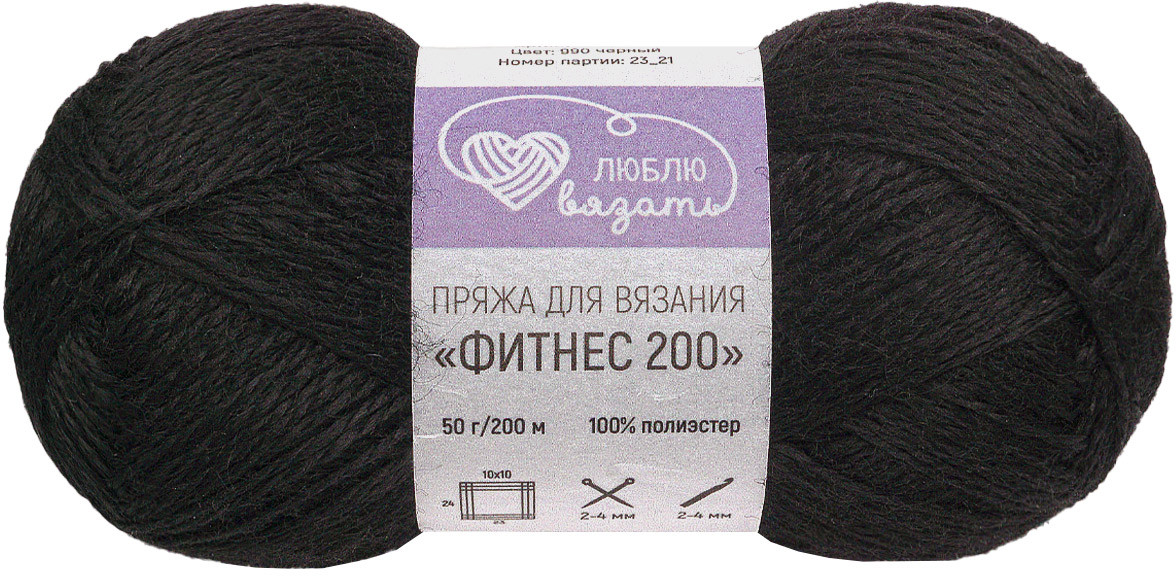 Люблю вязать Пряжа для вязания «Фитнес 200», цвет 990 Чёрный