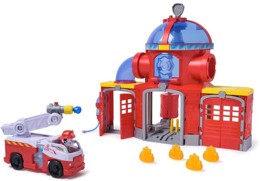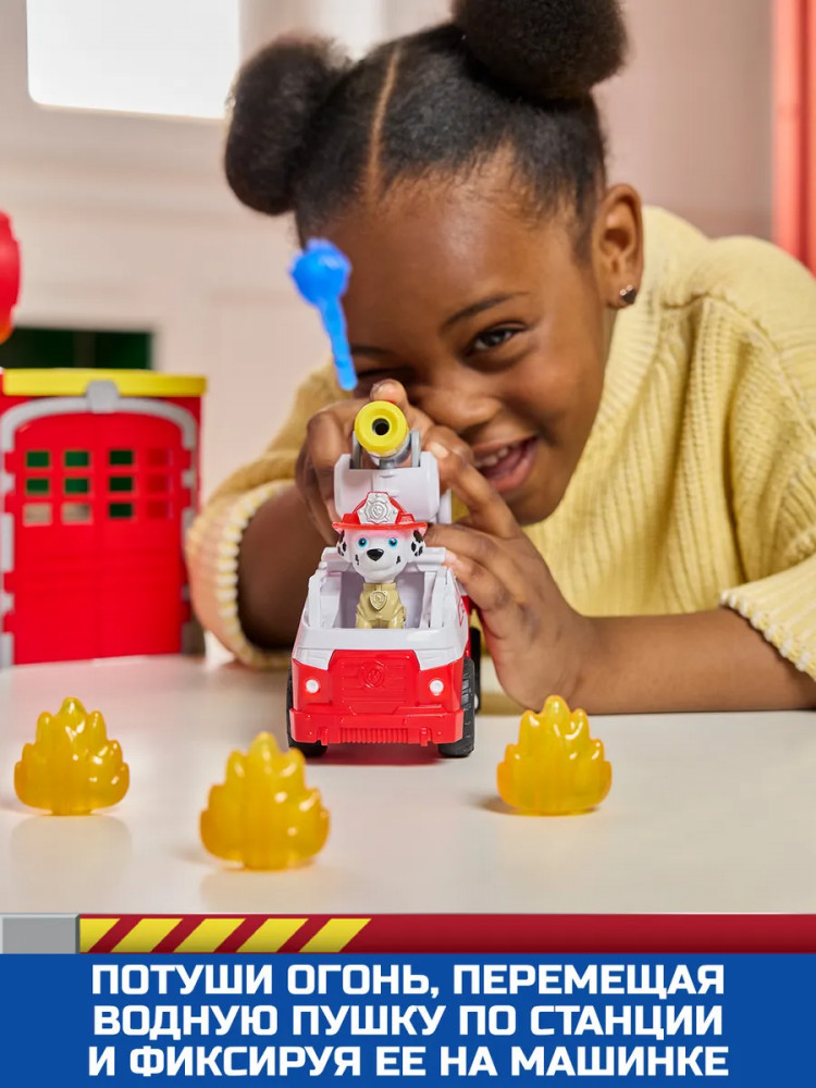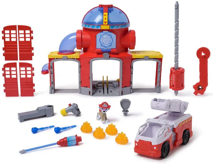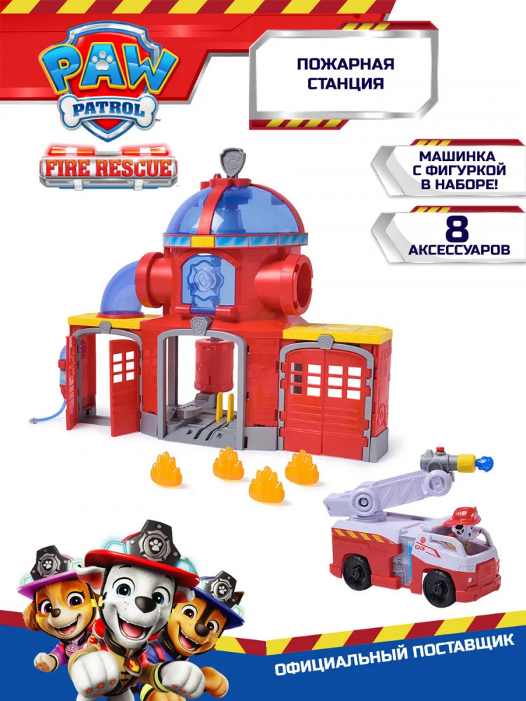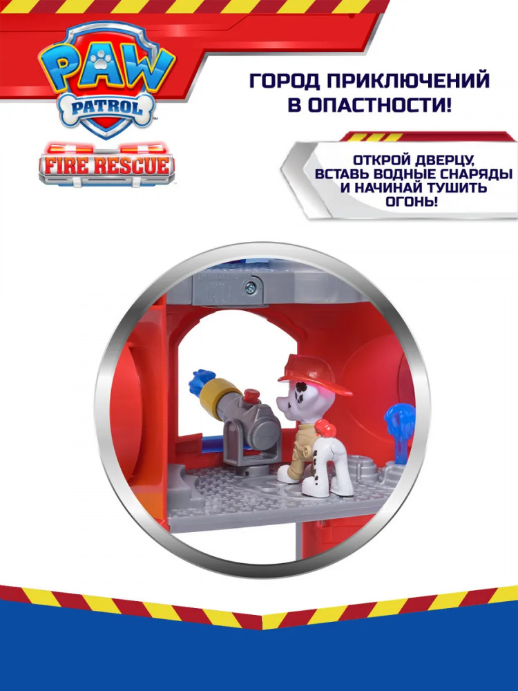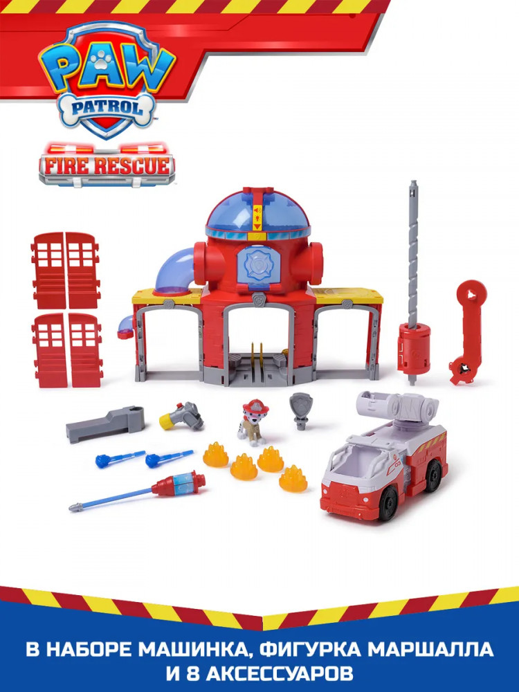 Серия: Пожарные спасатели Щенячий патруль — это дружная команда щенков-спасателей из одноименного мультсериала. Вместе с командиром отряда — мальчиком Райдером — они помогают людям, где бы те не находились. Смотри! Дружные щенки, теперь пожарные спасатели! Обновленная смотровая башня щенков-спасателей! Теперь башня перевоплотилась в Пожарную станцию! Маршалл уже готов прийти на помощь. Смело поднимайся на самый верх, находи новые миссии и отправляйся в путь! Или открывай ворота и спеши на помощь каждому! Новая башня стала еще более яркой с разнообразием звуковых и световых эффектов, а также с многочисленными аксессуарами! |