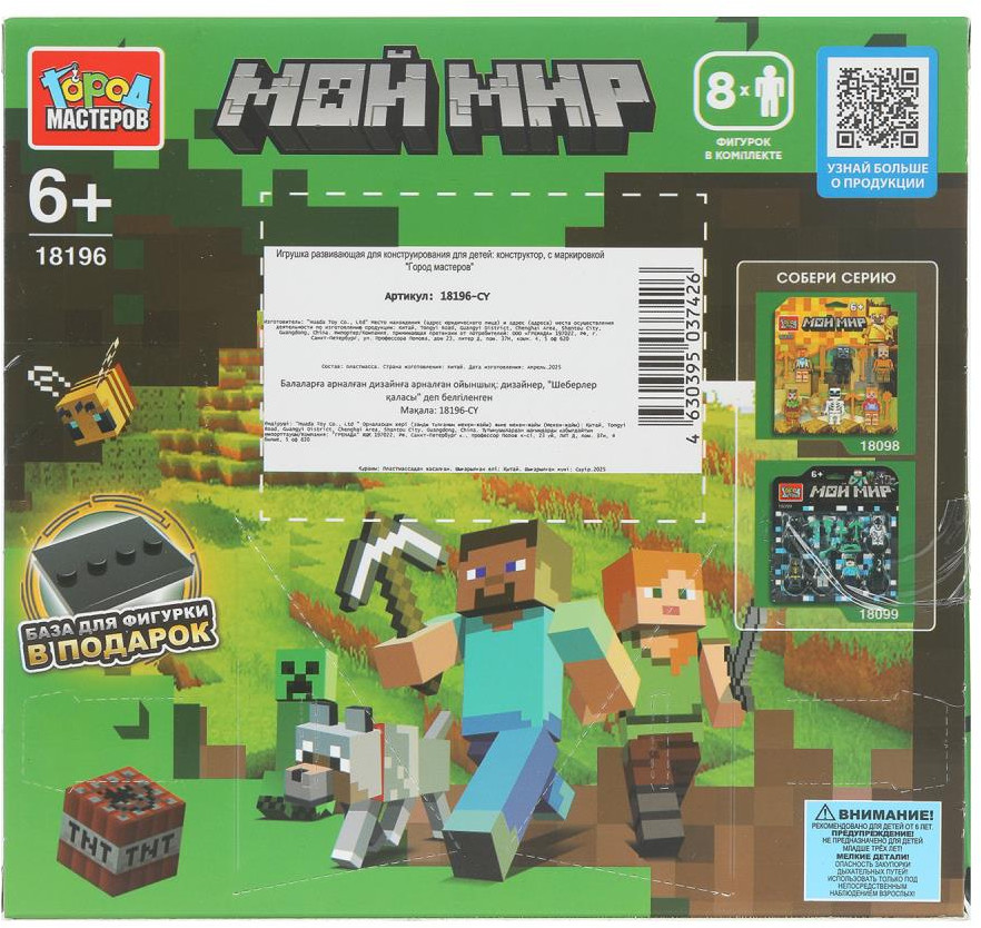 Набор фигурок «Мой мир» ТМ «Город мастеров» — отличный подарок для маленького фантазёра — любителя конструирования. Яркий набор фигурок в виде персонажей виртуальной реальности по мотивам популярной видеоигры станет прекрасным дополнением для игр с любимым конструктором. Набор вдохновит детей на новые увлекательные сюжеты и поможет разнообразить их игры.