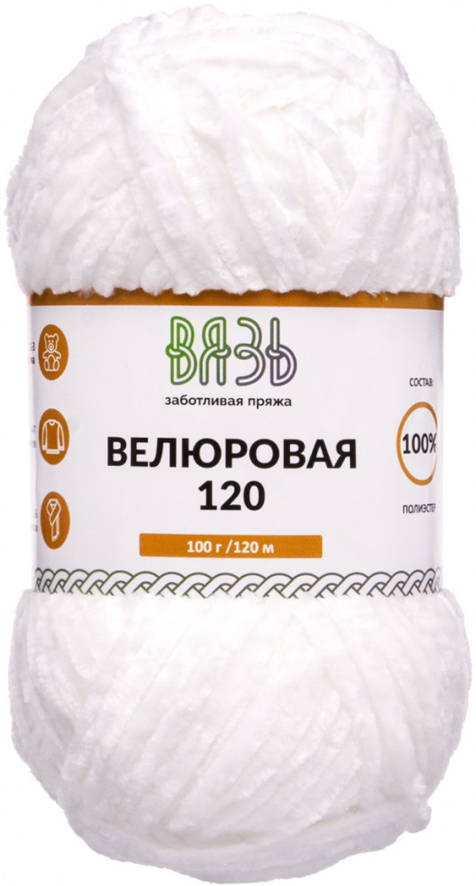 Вязь Пряжа для вязания «Велюровая 120», цвет 01 Белый