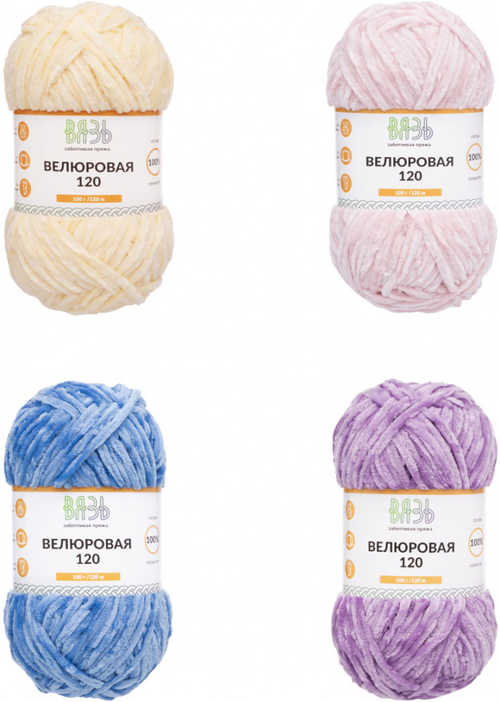 У Велюровой 120 от бренда Вязь уже есть предшественница — более тонкая, но идентичная по составу, цветовой гамме и технологии производства. Вместе эти 2 вида пряжи открывают новые возможности для мастеров, которые вяжут мягкие игрушки.
