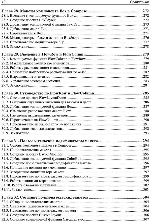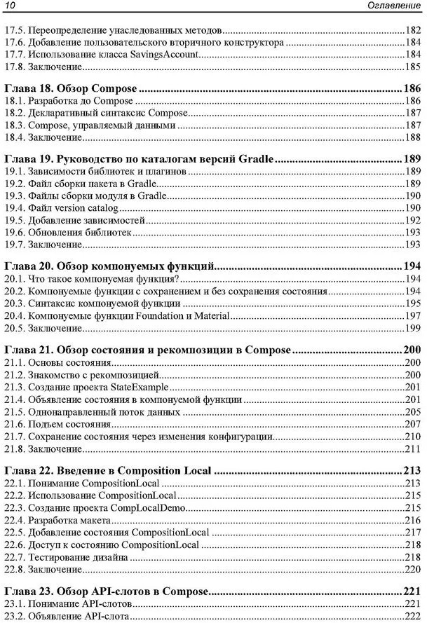 Книга посвящена практическому применению Jetpack Compose — современного декларативного фреймворка для создания пользовательских интерфейсов в Android-приложениях. Показаны основы языка Kotlin, от базовых конструкций до сопрограмм и объектно-ориентированного программирования. Рассматриваются ключевые концепции Compose 1.6, включая построение пользовательских интерфейсов с помощью Composable-функций, управление состоянием, навигация, анимационные эффекты, и архитектура приложений. Отдельное внимание уделено работе с базами данных SQLite и библиотекой Room, биометрической аутентификации, встроенным покупкам, использованию карт Google Maps и публикации приложений в Google Play.В книге представлены практические примеры и подробные пошаговые инструкции по работе в Android Studio Iguana и использованию возможностей Material Design 3.Для начинающих и практикующих Android-разработчиков. |