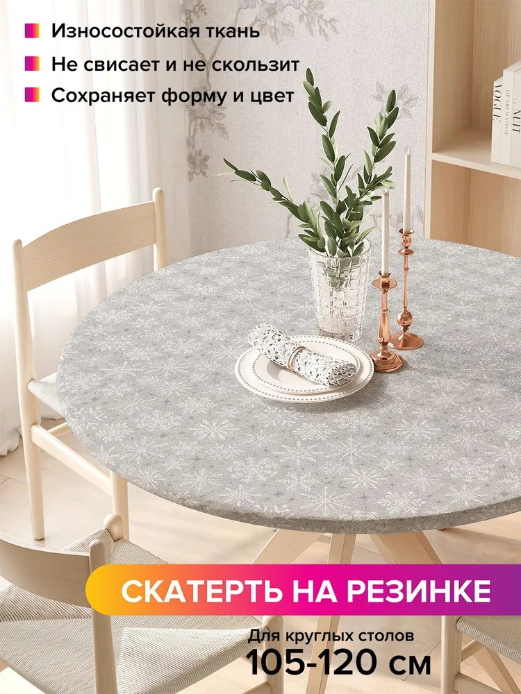 Круглая скатерть с принтом станет стильным аксессуаром на вашей кухни и подойдет не только для ежедневного пользования, но и для встречи гостей и семейных праздников. Благодаря резинке, расположенной по периметру, скатерть не скользит по поверхности стола и надежно фиксируется на круглый стол диаметром 75-100 см. Изделие изготовлено из прочной и гипоаллергенной ткани oxford и обработано водоотталкивающей пропиткой. Изображение нанесено на ткань с помощью технологии сублимационной печати, благодаря чему скатерть сохраняет свой цвет и хорошо переносит множество стирок.