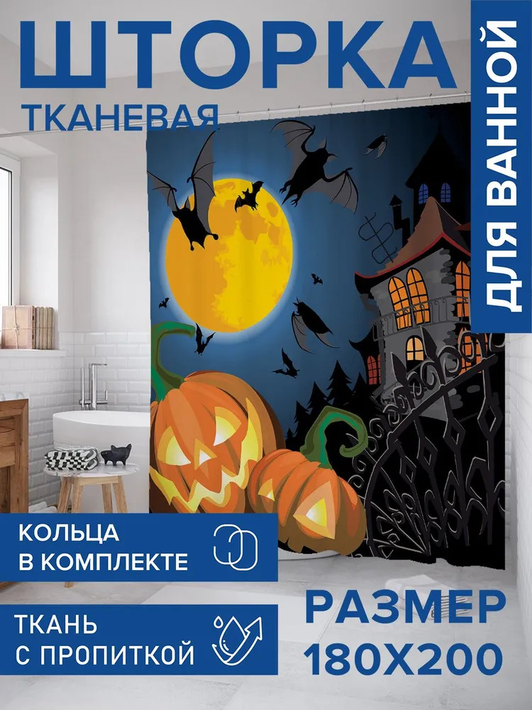 Серия: Хэллоуин Занавеска для ванной комнаты с 3D-эффектом — стильное дополнение для любого интерьера. Водоотталкивающая пропитка защитит вашу мебель от влаги и брызг, сохраняя полы сухими. Мягкая и приятная на ощупь ткань из сатена (100% полиэстер) плотностью 80 г/м² легко расправляется под собственным весом, не прилипает и не мнется, избавляя вас от необходимости использовать утяжелители и магниты. Стойкий и утонченный принт, нанесенный сублимационной печатью, останется ярким даже при контакте с водой, паром и после множества стирок. Отверстия для крючков надежно обработаны оверлоком для долговечности. Крючки пластиковые (12 шт.) идут в подарок! |