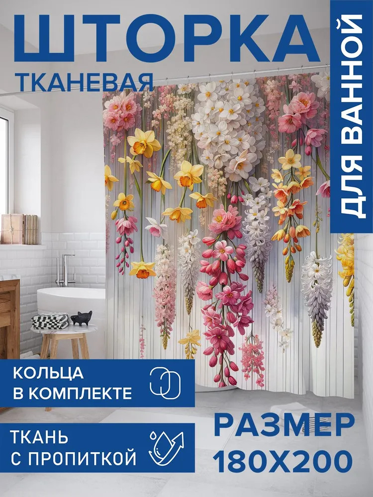 Серия: Прекрасное цветение Занавеска для ванной комнаты с 3D-эффектом — стильное дополнение для любого интерьера. Водоотталкивающая пропитка защитит вашу мебель от влаги и брызг, сохраняя полы сухими. Мягкая и приятная на ощупь ткань из сатена (100% полиэстер) плотностью 80 г/м² легко расправляется под собственным весом, не прилипает и не мнется, избавляя вас от необходимости использовать утяжелители и магниты. Стойкий и утонченный принт, нанесенный сублимационной печатью, останется ярким даже при контакте с водой, паром и после множества стирок. Отверстия для крючков надежно обработаны оверлоком для долговечности. Крючки пластиковые (12 шт.) идут в подарок! |