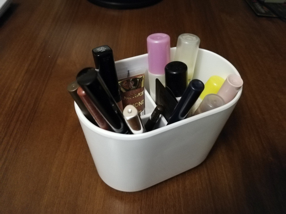 Удобная подставка. Я изначально покупала ее для косметики, чтобы наиболее часто используемая была в одном месте и под рукой. Подставка полностью оправдала мои ожидания.