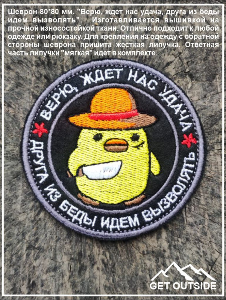 Get Outside Шеврон «Верю, ждет нас удача. Друга из беды идем вызволять»новинка