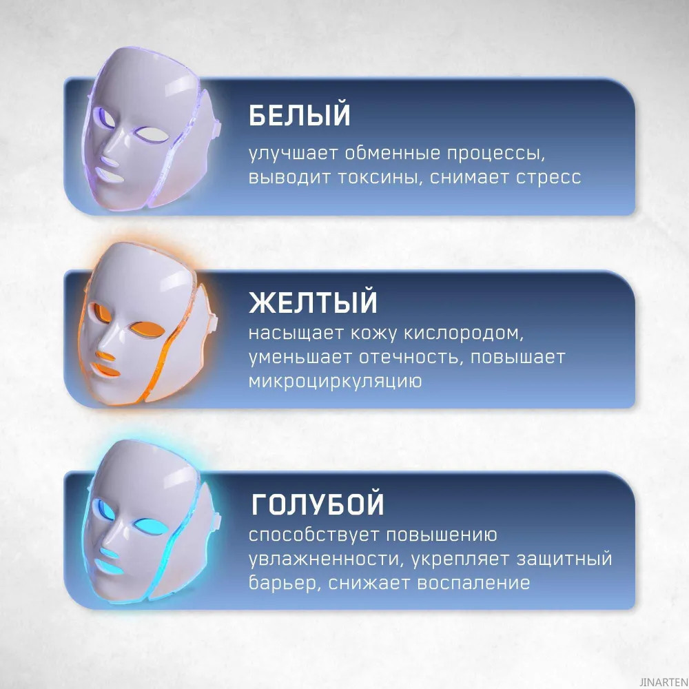 • синий (421–495 нм) — противовоспалительное и антибактериальное действие, идеален для проблемной и воспаленной кожи, эффективно лечит акне без раздражения;