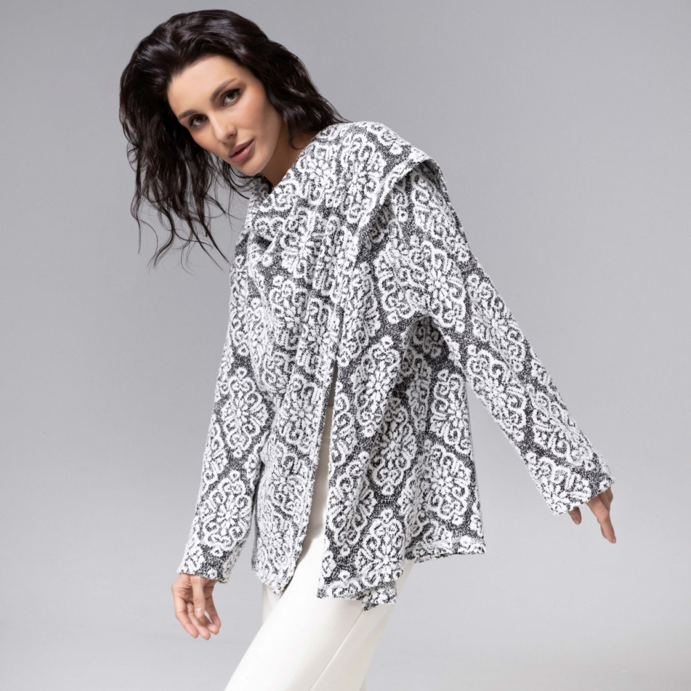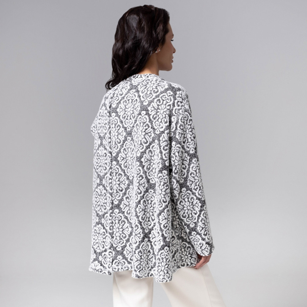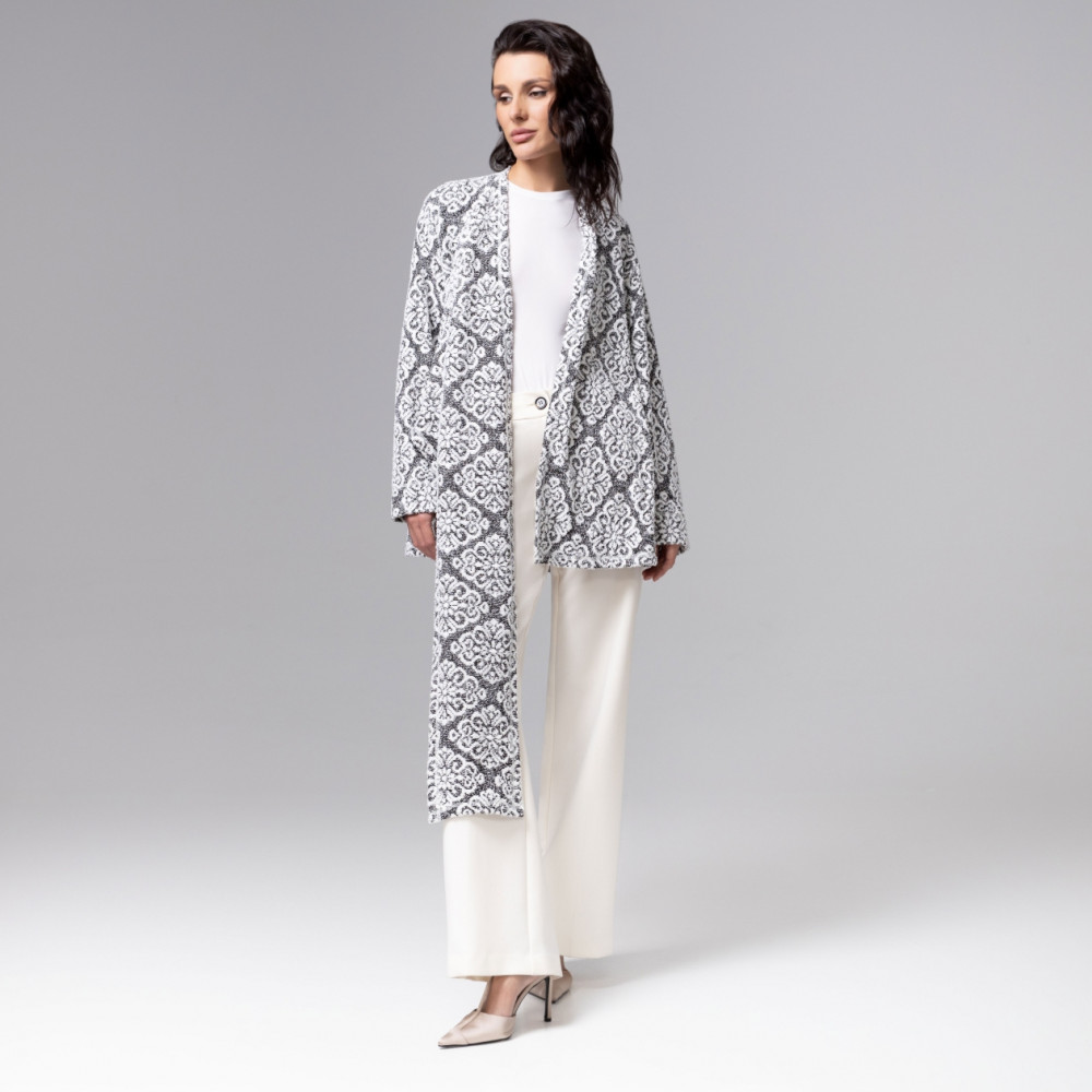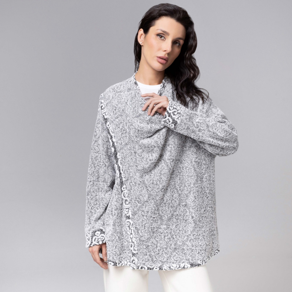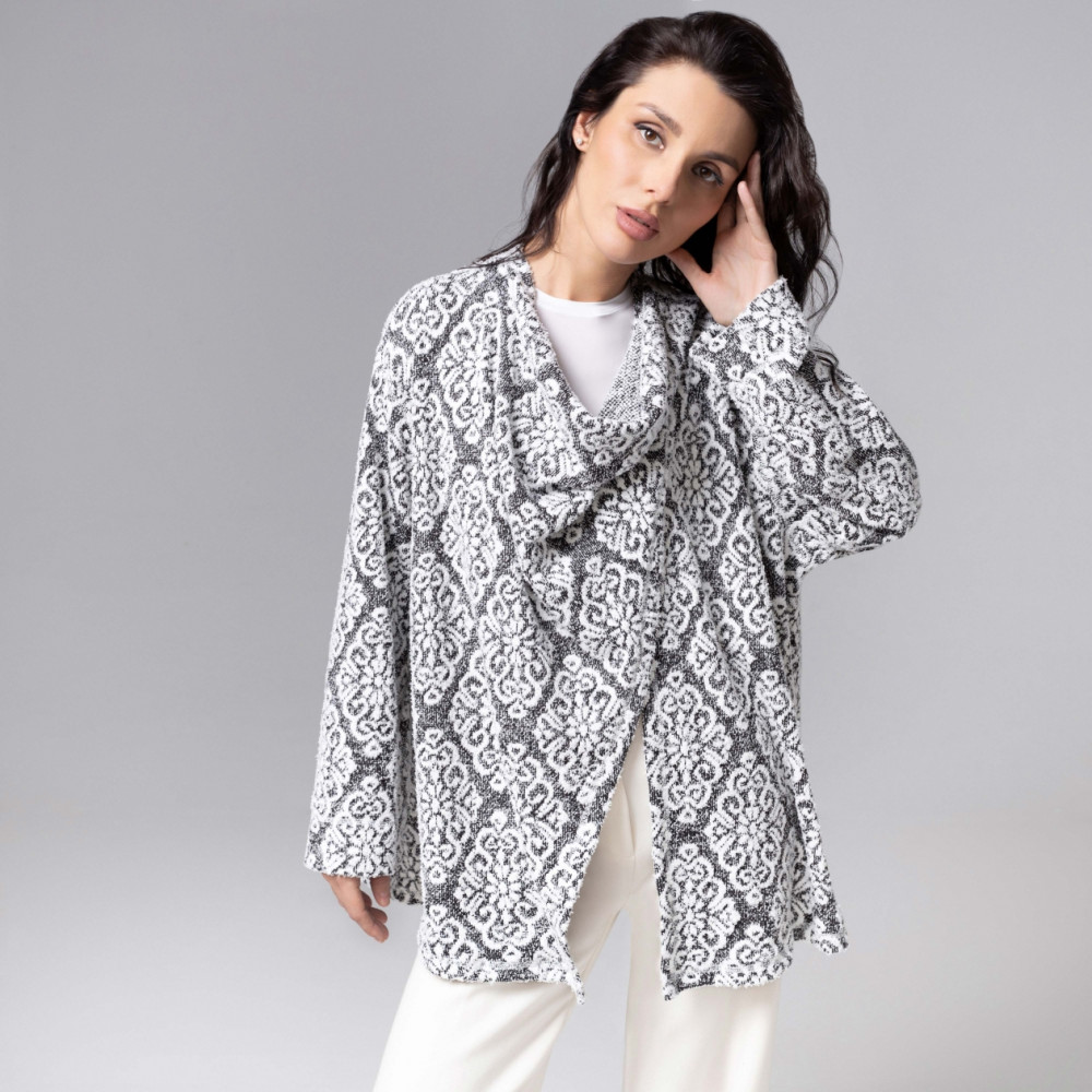 Этот кардиган — как два персонажа в одном: снаружи — деловая серьёзность, внутри — уютный плед для душевных разговоров. Меняйте сторону, как настроение. Вот он — настоящий «Секрет уверенности». Кардиган двусторонний. Сложный конструктивный замысел позволяет создавать вариации образов. Многослойная фактура ткани, сочетает мягкость и эластичность высококачественного трикотажа, а крой позаботился о безупречной посадке. Идеально подойдет на любой тип фигуры.