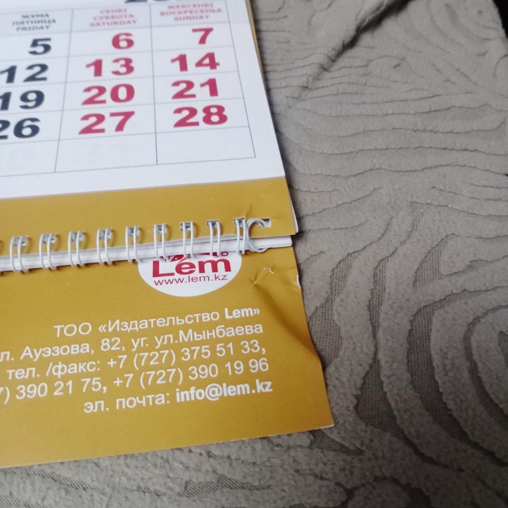 💳 Оплатить за товар можно при получении 🇰🇿 Есть бесплатная доставка по Казахстану от 1 дня 🎁 Копите бонусы с каждой покупки Календарь квартальный настенный с праздничными и выходными днями в РК на 2026 год. Из 3-х блоков по 12 страниц на пружине. Размер календаря 30 см на 80 см. Календарь имеет русский, английский, казахский языка. Имеется бегунок. |