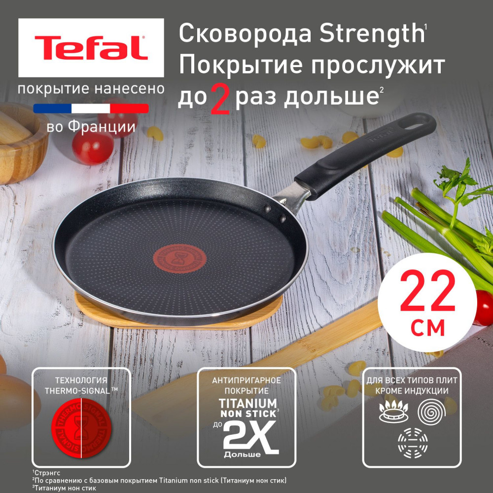 Сковорода серии Strength от Tefal поможет вам достичь безупречных результатов на вашей кухне. Превратите время, проведенное за приготовлением еды в настоящее удовольствие. Благодаря универсальной форме сковороды с высокими бортиками, специально разработанному антипригарному покрытию и технологии Thermo-signal™, указывающей на оптимальный нагрев поверхности, вы сможете ежедневно наслаждаться легким приготовлением вкусных и полезных блюд без лишнего масла.