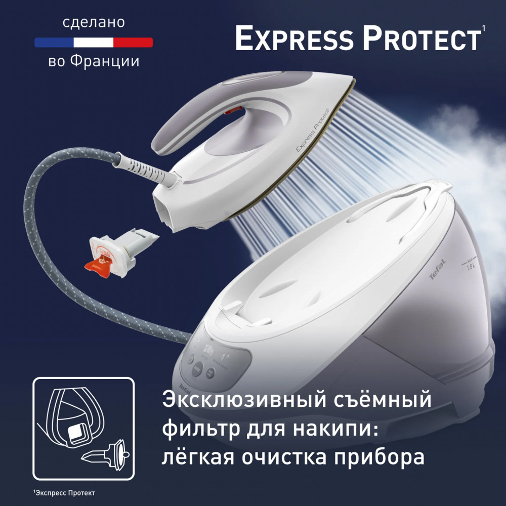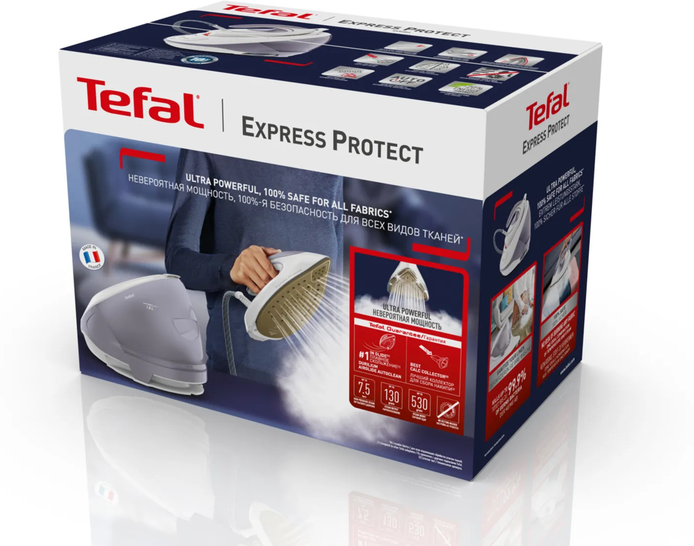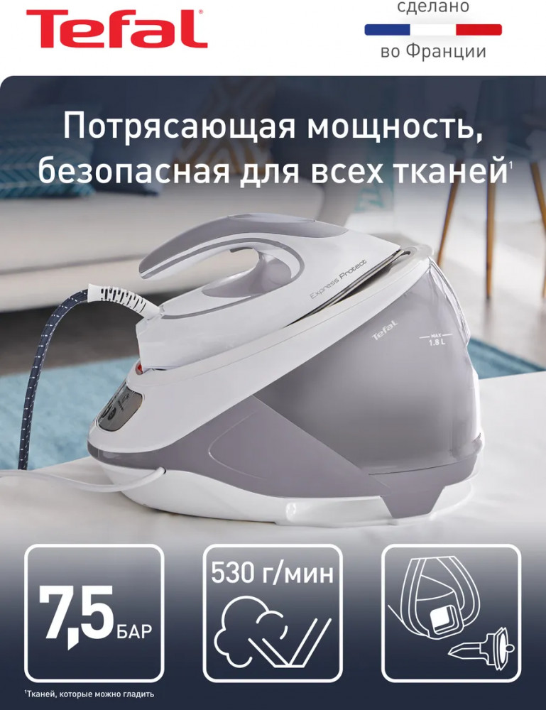 Парогенератор Tefal Express Protect SV9203E0 - модель с передовыми технологиями и надежной конструкцией, созданная для эффективного и качественного ухода за вещами из любой, даже самой деликатной, ткани. Система No-Settings обеспечивает интеллектуальную технологию настройки температурного режима и скорости подачи пара, которая позволит вам бережно проглаживать текстиль, не боясь прожечь его. Создавая давление 7.5 бар и постоянно подавая пар со скоростью 130 г/мин, прибор играючи справляется с глажением.