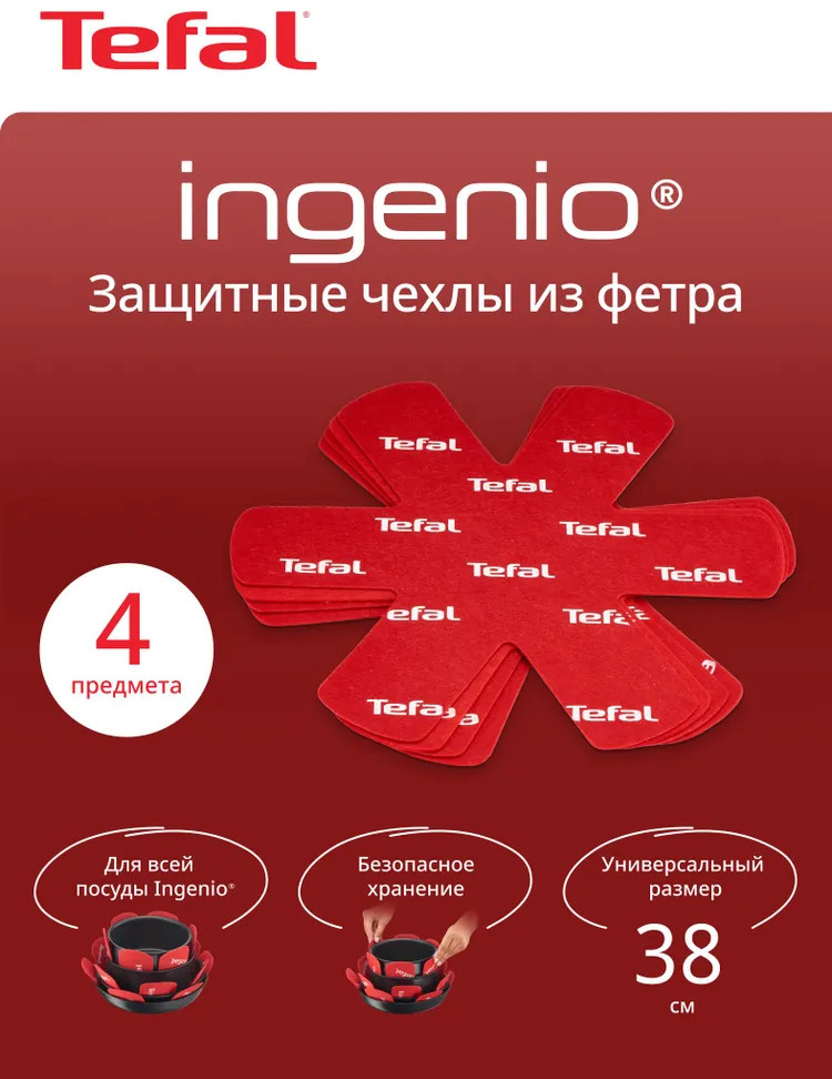 Протектор позволит хранить кастрюли, оберегая их от повреждений и царапин. В набор для кухни входит 4 предмета диаметром 38 см, которые идеально подойдут ко всей линейке кастрюль и сковородок Tefal Ingenio. Практичный и эффективный протектор из войлока идеально подходит для защиты ваших кастрюль и сковородок от царапин, трения и ударов. Сепараторы для металлических кастрюль Tefal Ingenio позволяют хранить кухонный инвентарь, не опасаясь царапин или других повреждений. Войлочные прокладки Тефаль могут отлично защищать кухонную утварь во время ее хранения. Вставка войлочной прокладки между кастрюлями или сковородками позволяет защищать их поверхность от повреждений и облегчает удаление загрязнений.