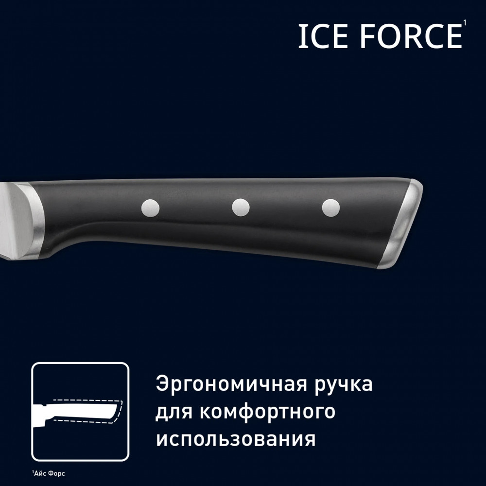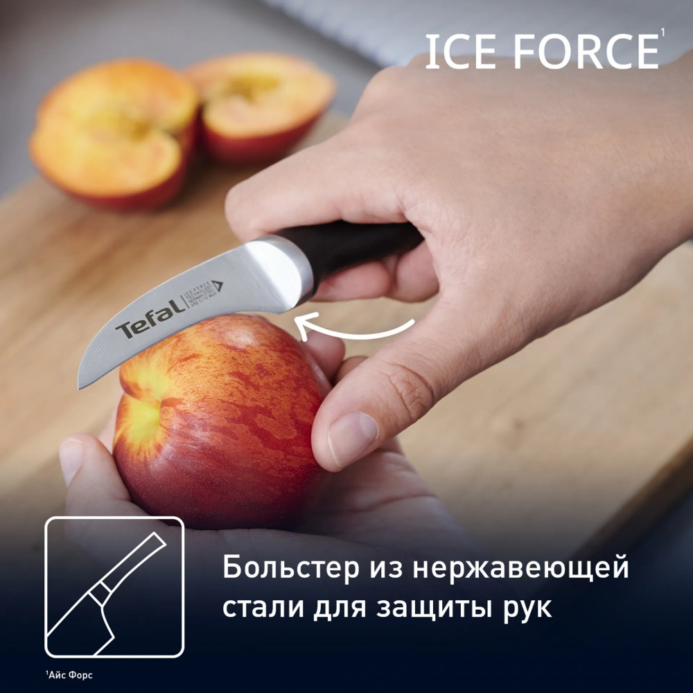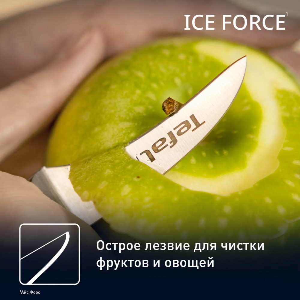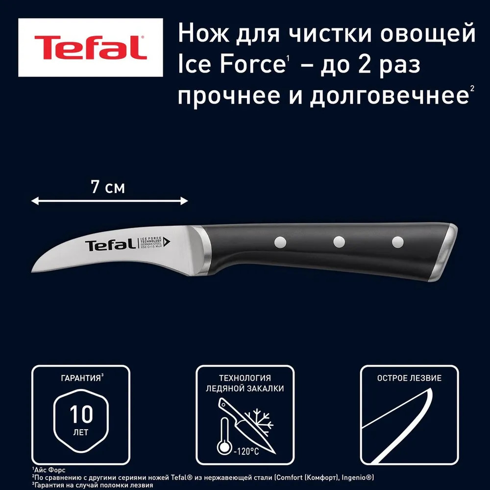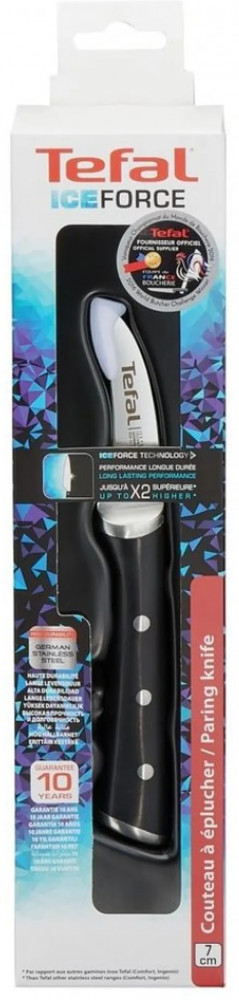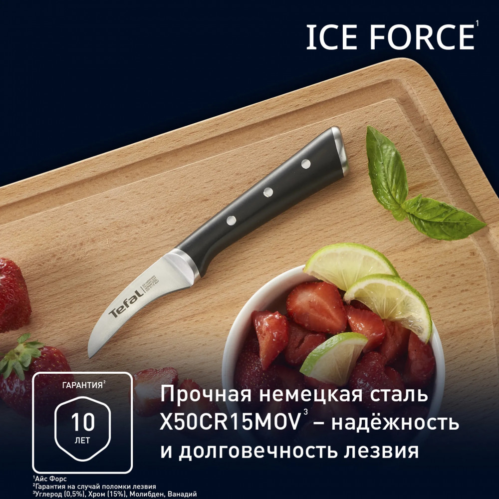 Нож для чистки овощей Tefal Ice Force представляет собой компактный инструмент, предназначенный для эффективной чистки овощей и фруктов. Его длина лезвия 7 см, что позволяет выполнять точные и аккуратные работы. Нож изготовлен из высококачественной немецкой стали, что гарантирует его долговечность и устойчивость к повреждениям. Благодаря ледяной закалке лезвия до −120°C, нож приобретает повышенную прочность, устойчивость к коррозии и сохраняет остроту на длительный срок. Острое лезвие с характерной формой идеально подходит для точной нарезки и шинковки. Больстер из нержавеющей стали обеспечивает защиту рук и удобный захват, а эргономичная рукоять с заклепками позволяет комфортно использовать нож даже при длительных работах. Ножи серии Ice Force обладают 10-летней гарантией на лезвие, что свидетельствует о их высоком качестве и надежности. Серия Ice Force сочетает в себе прочность и удобство, превращая процесс нарезки в легкое и приятное занятие.