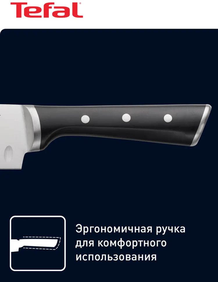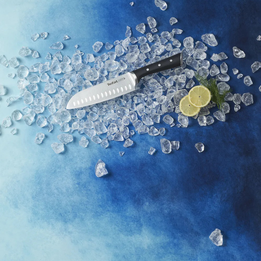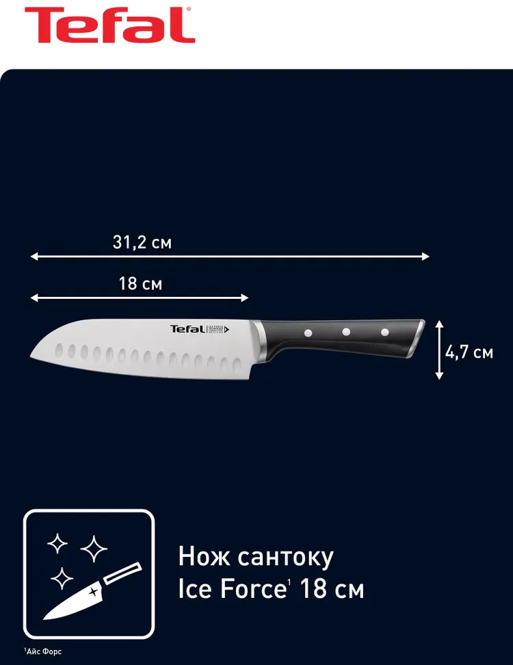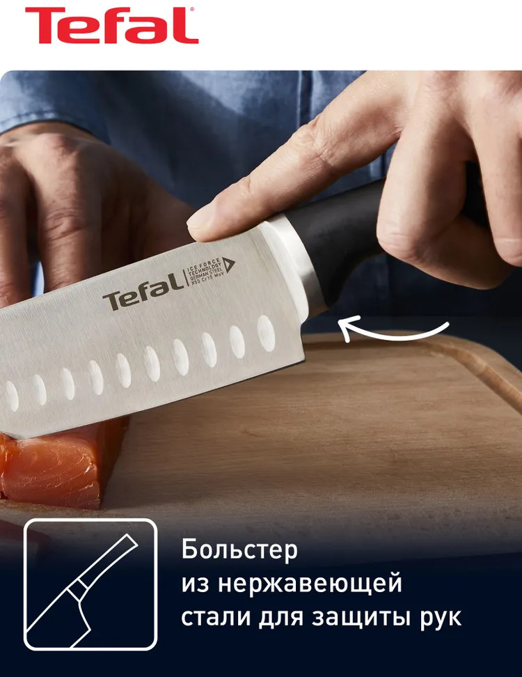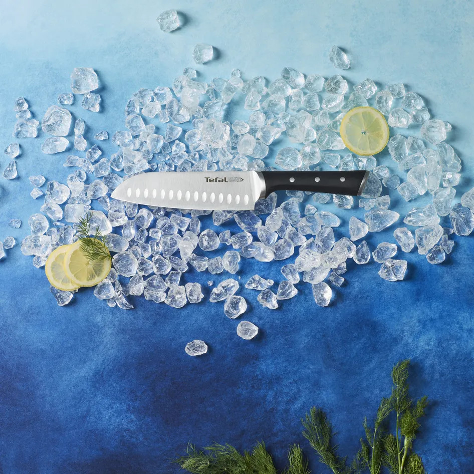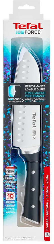 Нож-сантоку Tefal Ice Force — идеальный нож для нарезки и шинковки овощей, рыбы и мяса. Длина ножа 18 см даёт отличную маневренность при работе с различными продуктами. Нож выполнен из премиальной немецкой стали, что обеспечивает долговечность и стойкость к повреждениям. Ледяная закалка лезвия до −120°C повышает прочность ножа, устойчивость к коррозии и позволяет лезвию оставаться острым на длительное время. Острое лезвие с характерной формой идеально подходит для точной нарезки и шинковки. Больстер из нержавеющей стали защищает руки и способствует удобному захвату ножа, а эргономичная рукоять с заклепками обеспечивает комфортное использование даже при длительных нарезках. Ножи серии Ice Force имеют 10 лет гарантии на лезвие, что подтверждает их долговечность и высокое качество. Серия Ice Force — это сочетание высокой прочности, дизайна и функциональности, что делает каждый процесс нарезки легким и приятным.