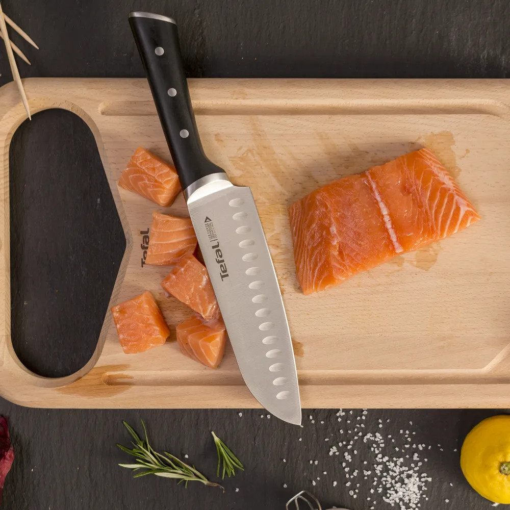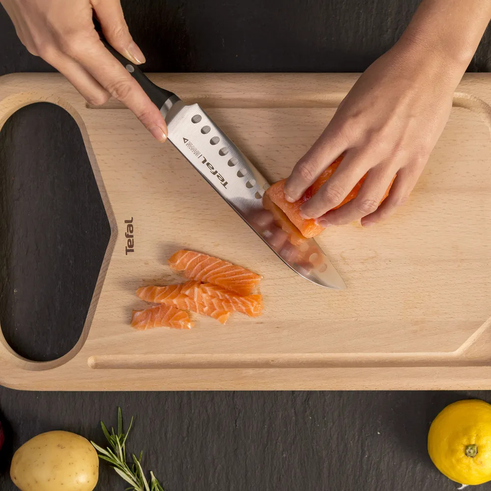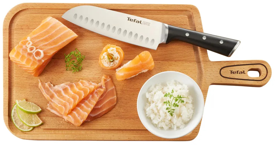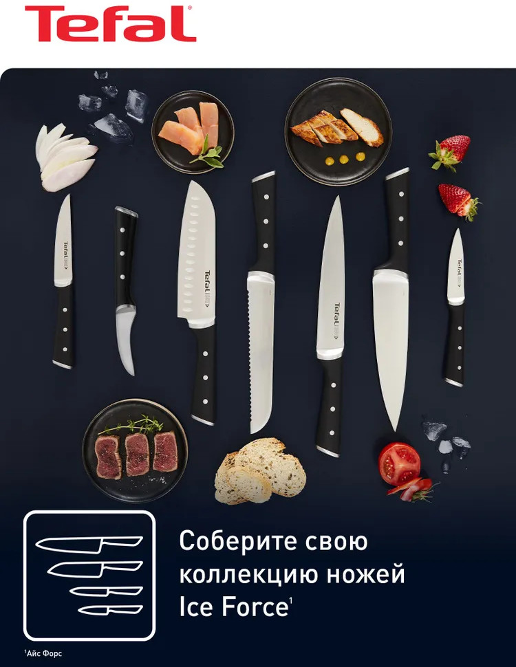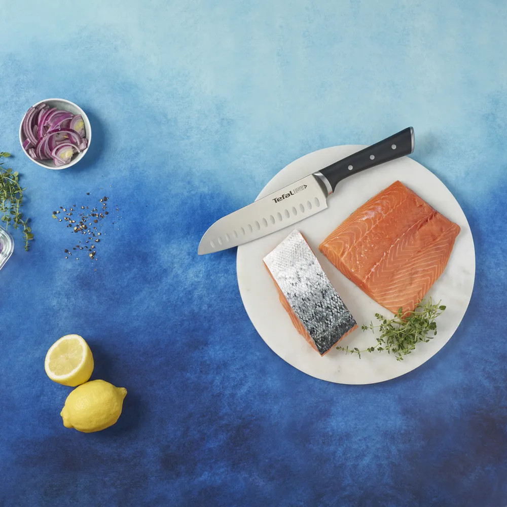Нож-сантоку Tefal Ice Force — идеальный нож для нарезки и шинковки овощей, рыбы и мяса. Длина ножа 18 см даёт отличную маневренность при работе с различными продуктами. Нож выполнен из премиальной немецкой стали, что обеспечивает долговечность и стойкость к повреждениям. Ледяная закалка лезвия до −120°C повышает прочность ножа, устойчивость к коррозии и позволяет лезвию оставаться острым на длительное время. Острое лезвие с характерной формой идеально подходит для точной нарезки и шинковки. Больстер из нержавеющей стали защищает руки и способствует удобному захвату ножа, а эргономичная рукоять с заклепками обеспечивает комфортное использование даже при длительных нарезках. Ножи серии Ice Force имеют 10 лет гарантии на лезвие, что подтверждает их долговечность и высокое качество. Серия Ice Force — это сочетание высокой прочности, дизайна и функциональности, что делает каждый процесс нарезки легким и приятным.