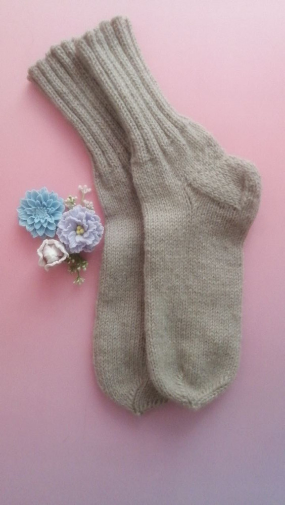 Носки мужские, ручной вязки, индивидуально изготовленные из 100% шерсти для здоровья Ваших ног. Согреют в холодные, морозные, зимние дни и вечера. Связаны на спицах с укрепленной пяткой. Резинка свободная, только облегает ногу не доставляя дискомфорта.