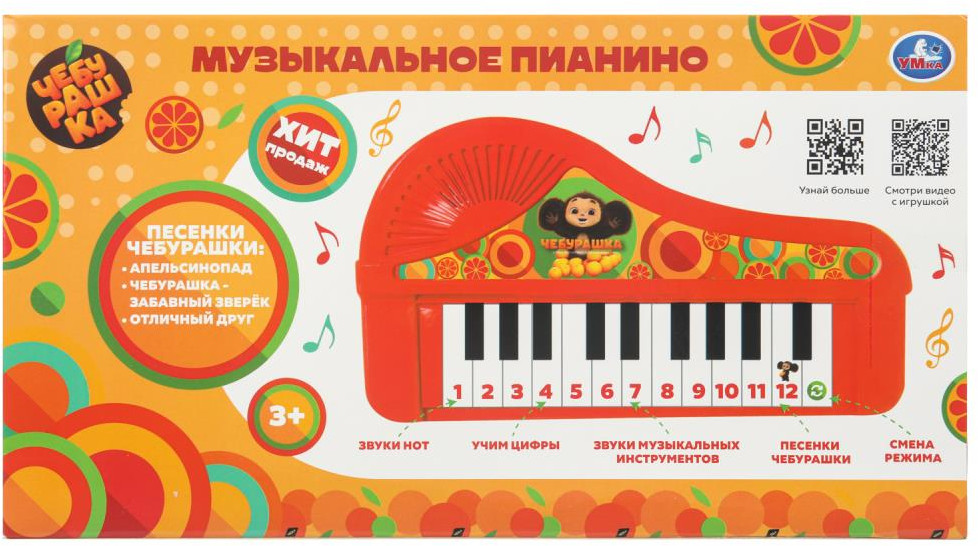 Музыкальное пианино «Чебурашка» ТМ «УМка» непременно понравится маленькому поклоннику милого ушастика. Ребёнок с удовольствием будет нажимать на клавиши пианино, представляя себя в роли пианиста и сочинять собственные музыкальные композиции. Ему также понравятся воспроизводимые игрушкой весёлые песенки Чебурашки. Кроме того, в увлекательной игровой форме малыш познакомится с цифрами и со звучанием разных музыкальных инструментов.