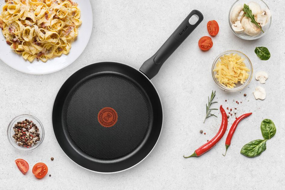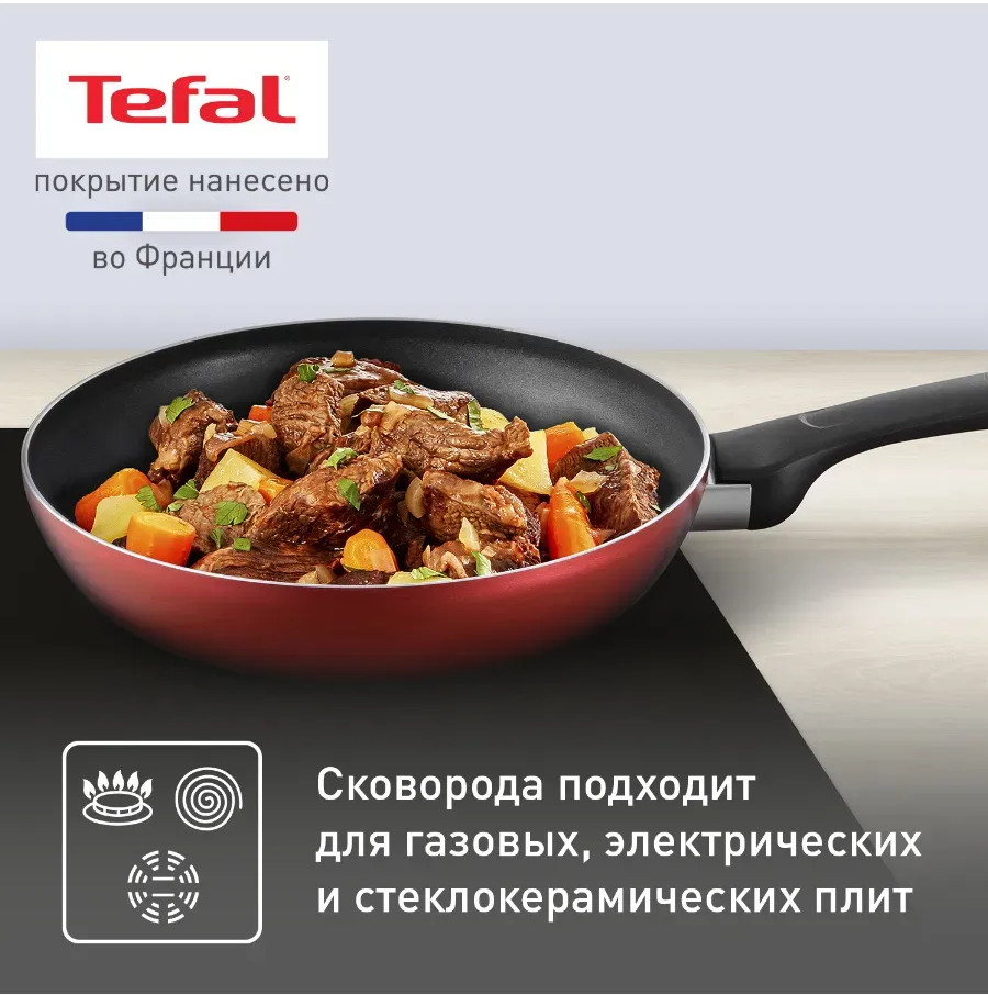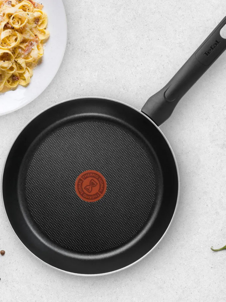 Новый день — новый повод удивить родных и близких. Омлет, панкейки, котлеты для бургеров с идеальной прожаркой — сковорода от Tefal поддержит любой ваш выбор. Испытайте новую глубину вкуса приготовленных блюд. Сковорода подходит для всех типов плит, кроме индукционных. Индикатор нагрева становится темно-красным, когда сковорода достигает идеальной температуры для начала приготовления. Высококачественное покрытие Titanium non-stick выдерживает любые кухонные аксессуары и остается идеально гладким, сохраняя свои безупречные антипригарные свойства даже при длительном и интенсивном использовании. Покрытие нанесено во Франции.