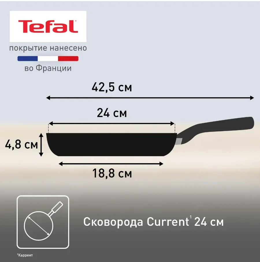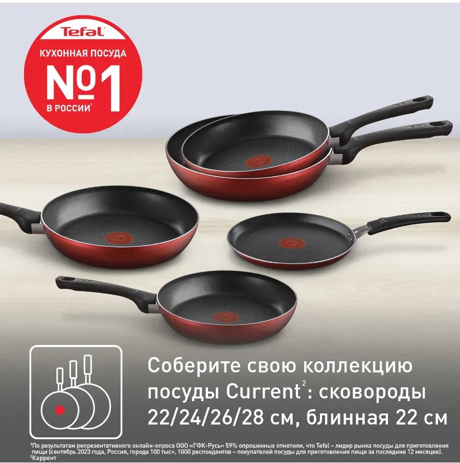 Сковорода Tefal Current сделает удобным и приятным ежедневное приготовление блюд для всей семьи. Вы действительно можете на нее рассчитывать: высококачественное антипригарное покрытие Titanium позволит готовить с минимальным количеством масла, глубокая форма легко вместит много порций для большой семьи, а равномерное распределение тепла гарантирует идеальную прожарку и сочность приготовленных блюд.