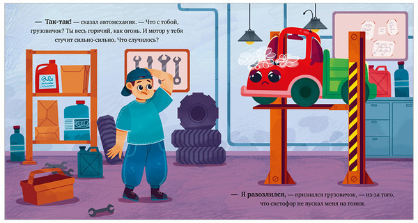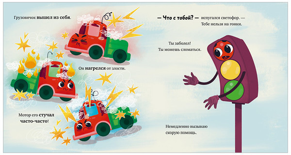 💳 Оплатить за товар можно при получении 🇰🇿 Есть бесплатная доставка по Казахстану 🎁 Копите бонусы с каждой покупки Однажды грузовичок увидел гоночную машину и решил её догнать. Но светофор напомнил ему, что по городу нужно ездить по правилам. Грузовичок так разозлился, что у него перегрелся моторчик. Справится ли наш герой с сильными эмоциями и выиграет ли гонку? |