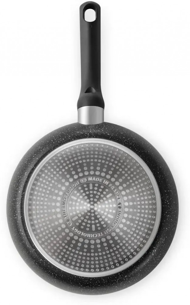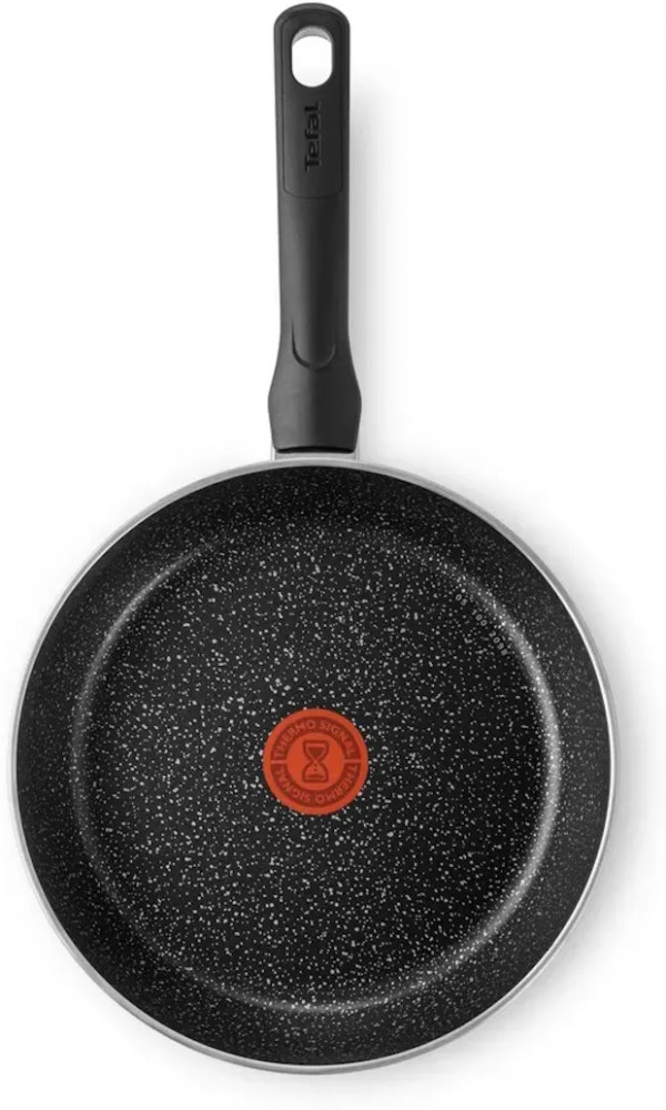 Вдохновленная свойствами натурального камня, сковорода Tefal Brut позволяет добиться идеального баланса между здоровым и вкусным. Нежные стейки из тунца, хрустящие вегетарианские гамбургеры или аппетитный жареный батат — эта сковорода действительно умеет вдохновлять на кулинарные шедевры без лишнего масла и жира. Секрет — прочное антипригарное покрытие, Mineralia, дополненное инновационным индикатором Thermo-Signal и индукционной технологией Thermo-Fusion. Модель имеет антипригарное покрытие: использование масла при готовке можно уменьшить намного или отказаться от него вообще. Изнутри оно выглядит как керамика. Красный индикатор из нержавеющей стали по центру становится ярким, когда сковорода достаточно нагрета и готова к работе. Бакелитовая ручка с отверстием для подвешивания не нагревается.