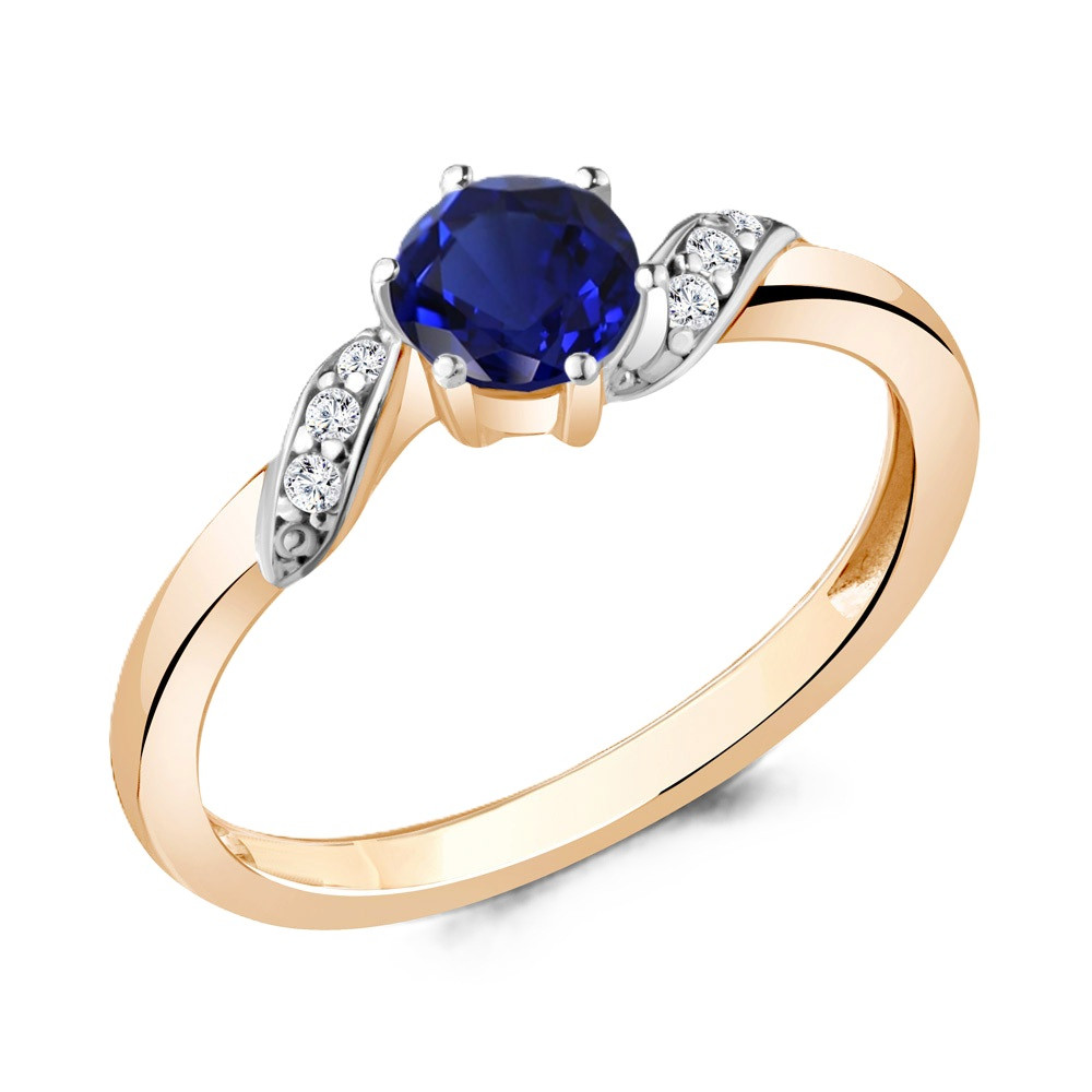 Aquamarine Кольцо из золоченного серебра с фианитами и наносапфиром