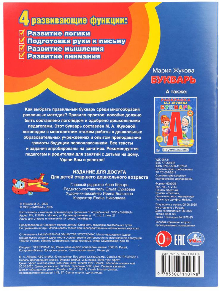 Серия: 50 наклеек Развивающая книжка с заданиями «М. А. Жукова. Букварь» ТМ «УМка» поможет ребёнку освоить навыки чтения. |