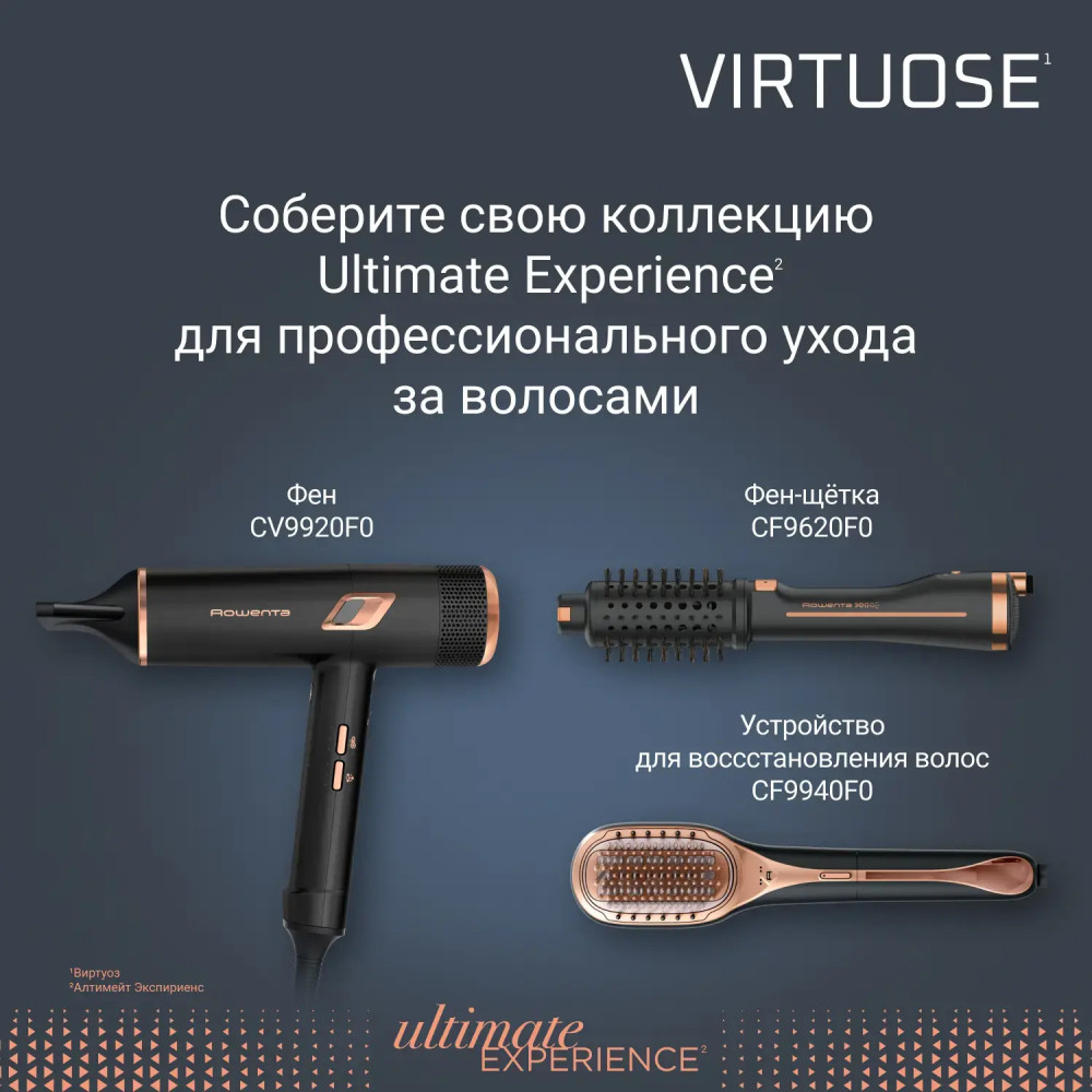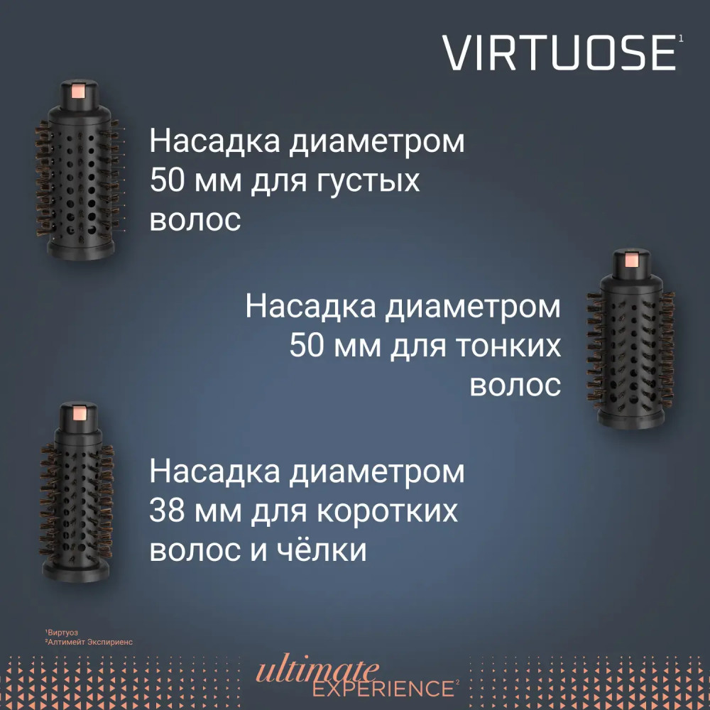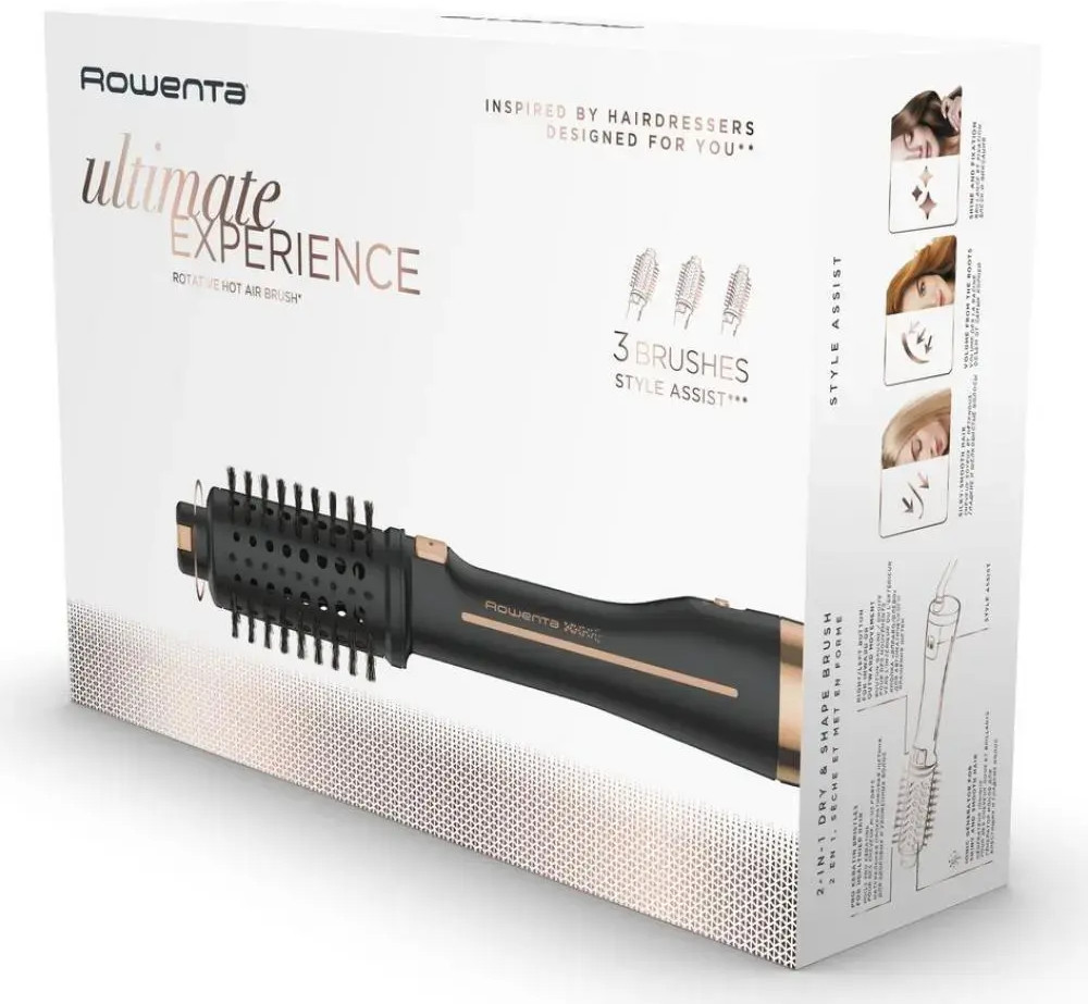 Серия: Ultimate Experience Хотели бы вы каждый день испытывать то незабываемое чувство, когда вы выходите из салона красоты с потрясающей укладкой? Представляем вам Rowenta Ultimate Experience — новую фен-щетку 2 в 1 с автоматическим вращением, выполненную в уникальном эргономичном корпусе для профессионального ухода за волосами у вас дома. Благодаря трем уникальным щеткам, которые подходят для любого типа волос, и интуитивным настройкам управления вы сможете создать укладку как в салоне красоты. |