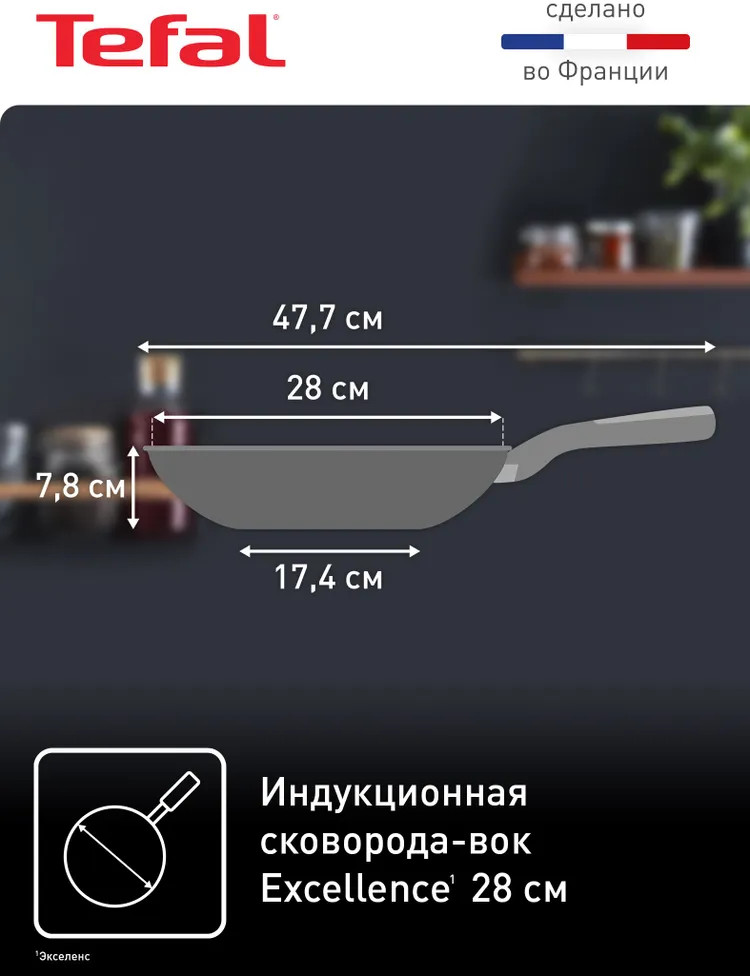 Мультифункциональная сковорода Tefal Excellence предлагает качественно новый уровень эффективности. Посуда сохраняет свои превосходные антипригарные свойства надолго благодаря очень толстому дну Thermo-Fusion™ + и инновационному антипригарному покрытию Titanium Anti-Scratch, которое служит до 6 раз дольше* и устойчиво даже к металлическим аксессуарам. *По сравнению с антипригарным покрытием Tefal Titanium. Посуда с высокими бортами подходит для комфортного приготовления больших порций и блюд для всей семьи. Посуда подходит для использования на газовых, электрических, стеклокерамических и индукционных плитах. Посуда имеет внутреннее и внешнее антипригарное покрытие, поэтому ее комфортно использовать день за днем и мыть после каждого использования.
