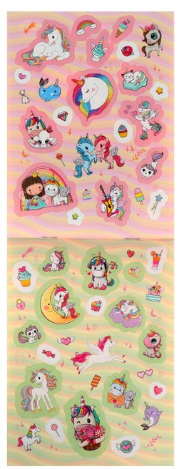 • на 8 страницах собраны очаровательные наклейки с изображениями единорогов, цветов, радуг и других волшебных элементов;