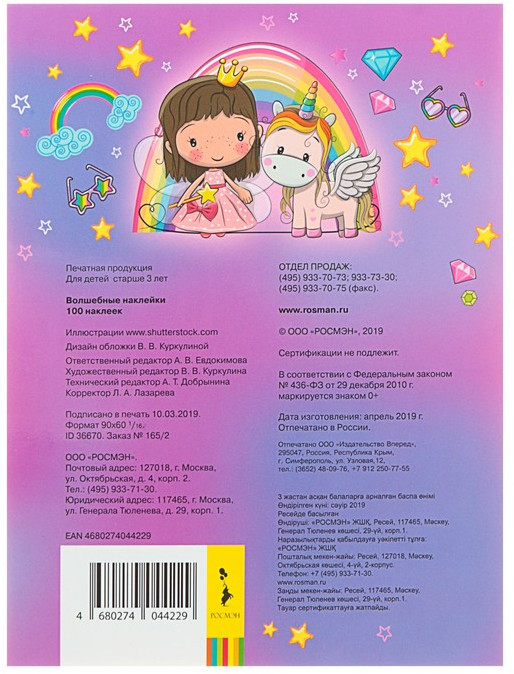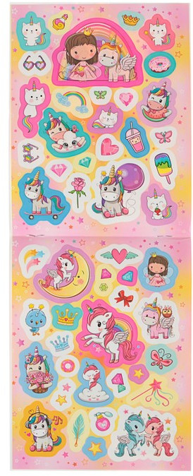 • на 8 страницах собраны самые волшебные наклейки с изображениями сказочных животных, милых героев и других очаровательных мотивов;