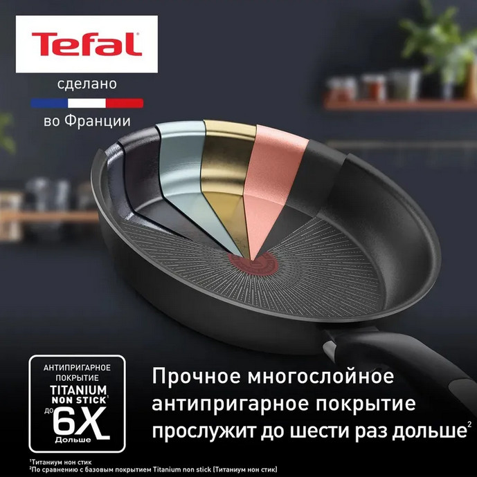 Tefal — международная торговая марка, производящая бытовые приборы (в основном кухонные) а также посуду. В 1968 г компания Tefal была приобретена Groupe SEB. Наряду с маркой Tefal Groupe SEB выпускает и продает продукцию в 120 странах мира таких брендов как Rowenta и Moulinex.Своим основным ориентиром в бизнесе Groupe SEB называет постоянный поиск инновационных решений для упрощения и усовершенствования процессов приготовления пищи и выполнения работы по дому. На протяжении своей истории...