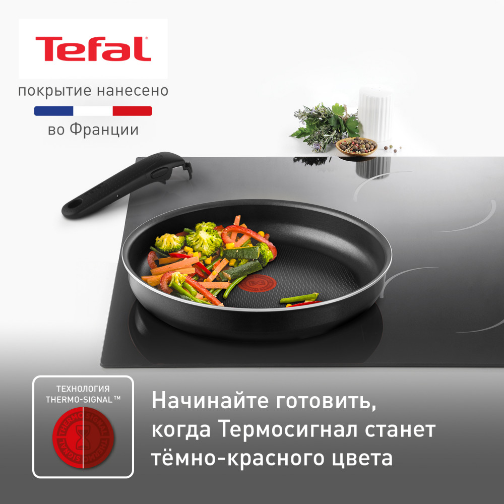 Уникальный индикатор температуры Thermo-Spot вовремя подскажет, когда сковородки достигли оптимальной температуры для начала приготовления блюд. Весь набор управляется всего одной съемной ручкой Ingenio 5, с помощью которой вы легко сможете готовить в нескольких сковородах одновременно, а после - сложить их по принципу матрешки для компактного хранения. Посуда подходит для всех типов плит, кроме индукции.