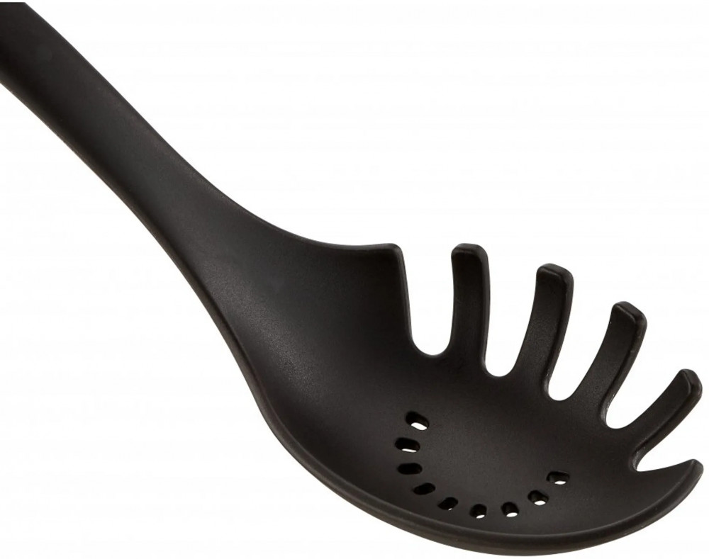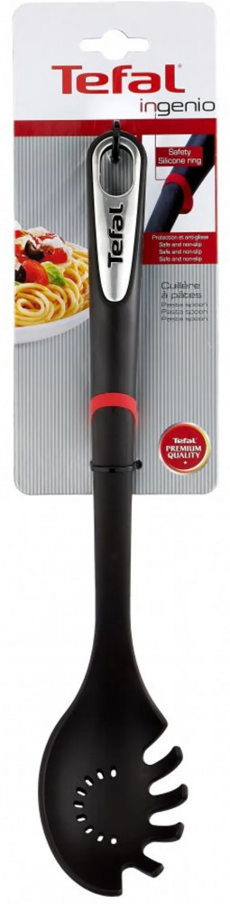 Ложка для пасты Tefal Ingenio — это идеальный помощник для тех, кто любит готовить с комфортом и заботой о деталях. Специальная форма с зубцами позволяет удобно захватывать и подавать любые виды пасты, а продуманные отверстия в центре ложки помогают слить лишнюю воду. Изготовленная из прочного и безопасного пластика, ложка выдерживает температуру до 230°C, не деформируется и не теряет цвет даже при интенсивном ежедневном использовании. Благодаря красному силиконовому кольцу аксессуар не скользит, не соприкасается с горячими краями посуды и надёжно фиксируется на краю кастрюли — это удобно и безопасно. Можно мыть в посудомоечной машине: изделие не теряет своих качеств даже после 100 часов автоматического мытья. Ложка не содержит бисфенол А и фталаты, полностью соответствуя современным стандартам экологичности.