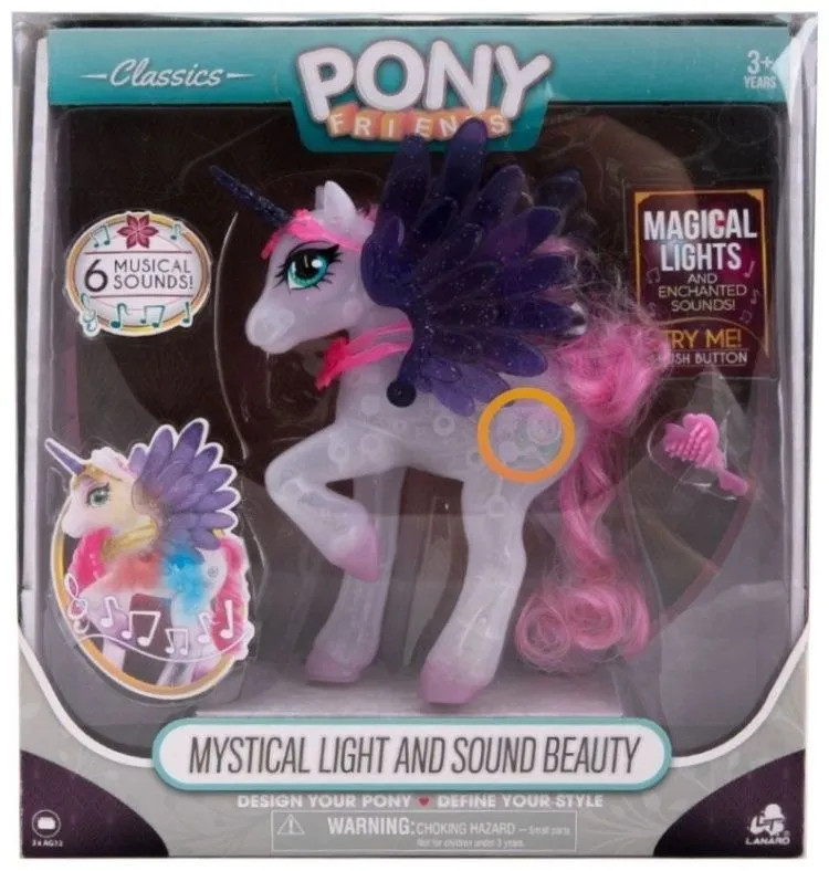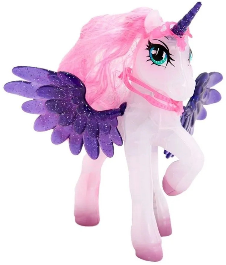 Очаровательный единорог станет любимцем маленькой принцессы. Игрушка светится, издаёт 6 волшебных мелодий, активируемых кнопкой на боку. Мягкий хвост и грива отлично расчёсываются, в комплекте — фирменная розовая расчёска. Пони вдохновляет на ролевые и фантазийные игры, развивает слух, внимание и воображение. |