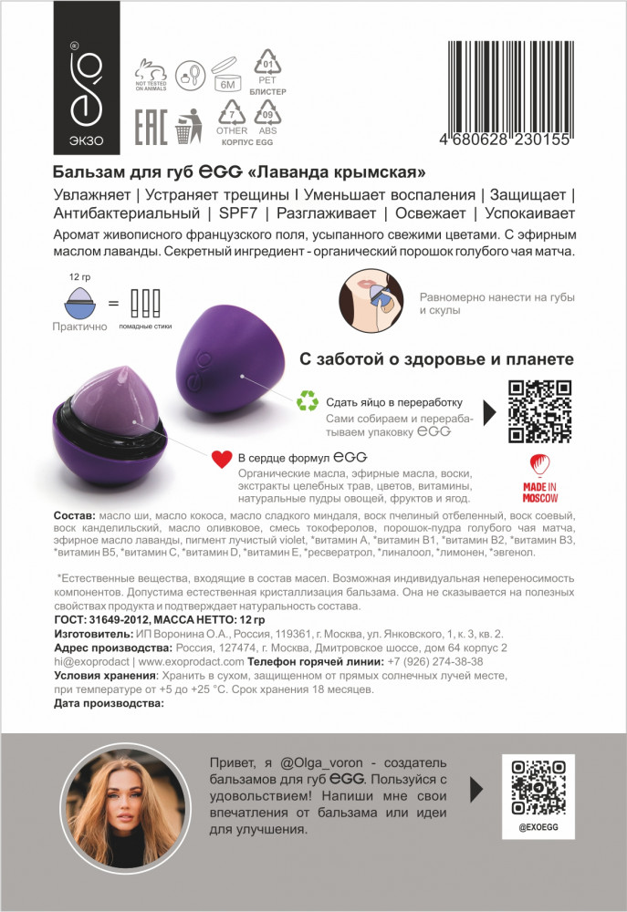 ЭКЗО - российский бренд, производитель органической, натуральной косметики и парфюмерии с природными формулами, которые восполняют, защищают, борются со стрессом, старением и негативным воздействием окружающей среды. |