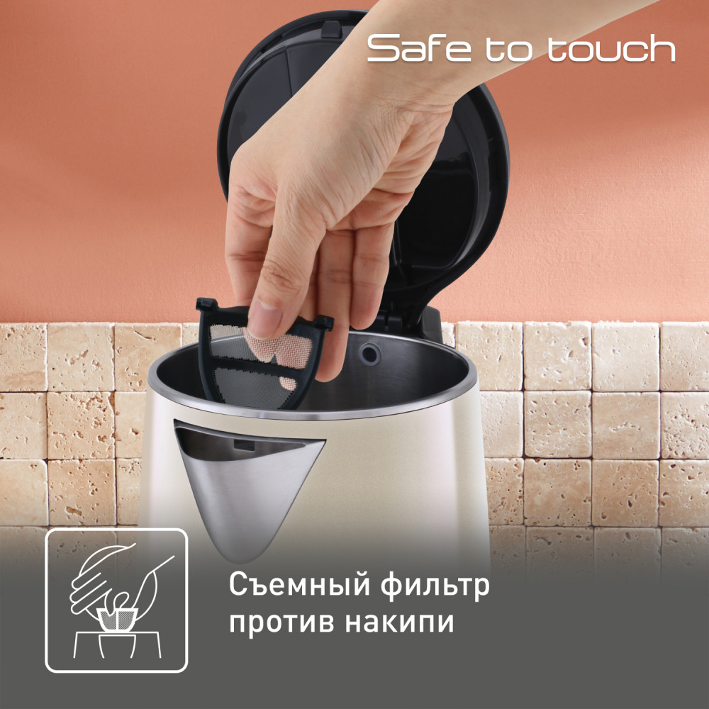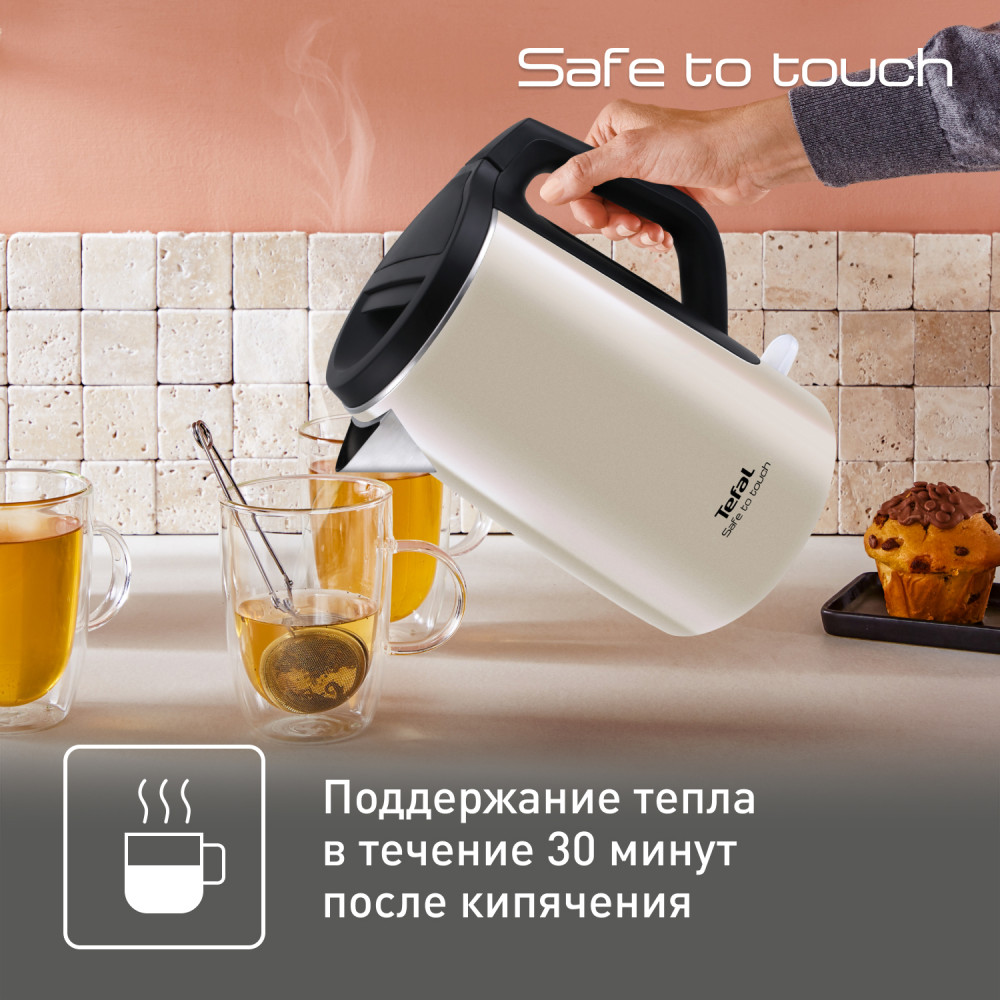 Серия: Safe to touch Новый чайник Tefal Safe to Touch — это мощность и безопасность в стальном корпусе. Быстрый нагрев до 1.5 л воды обеспечит горячем чаем или кофе даже большую компанию. Специальное скрытое расположение нагревательного элемента обеспечивает быстрое кипячение воды и легкую чистку чайника. Чайник сохраняет тепло в течение 30 минут, затем автоматически выключается. Специальное внутреннее покрытие из нержавеющей стали легко чистить. |
