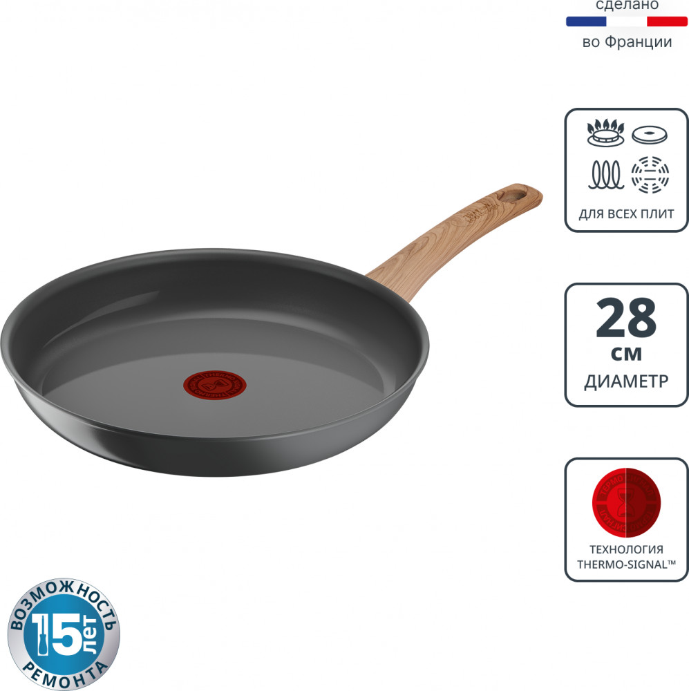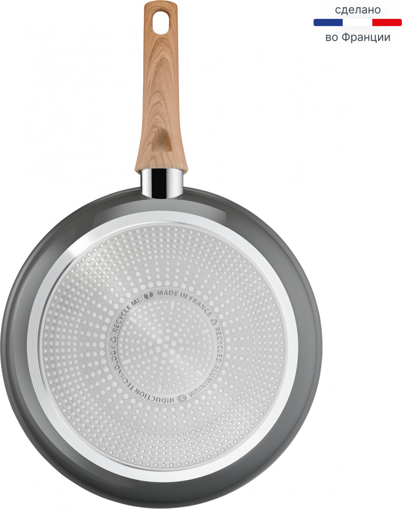 Наши инновационные продукты изготавливаются во Франции из высококачественных материалов под особым контролем. Алюминиевый корпус сковороды (Re)New изготовлен на 100% из переработанных материалов, а упаковка изделия создана на 90% из переработанного картона и пригодна для вторичной переработки. Благодаря высокому качеству антипригарного покрытия сковороду легко мыть после каждого приготовления пищи. Воплощение французского качества в современном дизайне с покрытием, стилизованным под дерево, и экологичной маркировкой на ручке изделия.