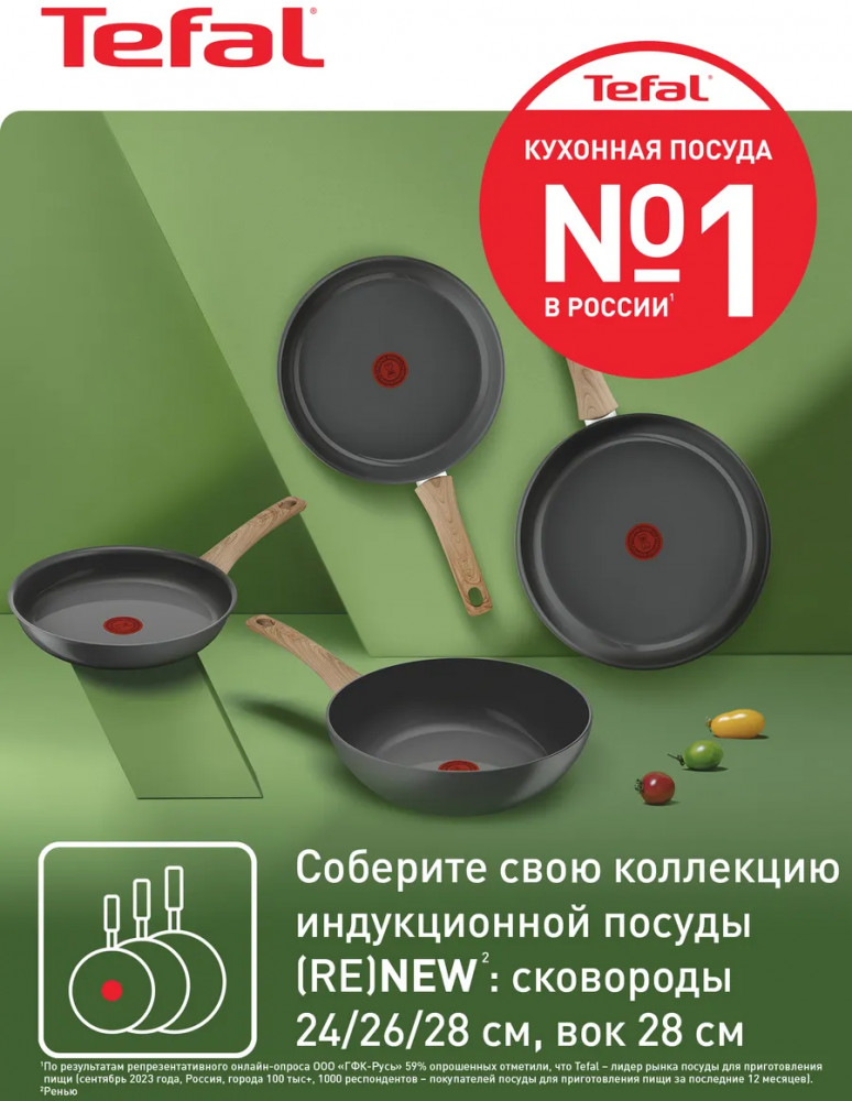 Серия (Re)New создана для того, чтобы делать вашу жизнь комфортнее день за днём. Улучшенная технология: Thermo-SignaIT становится равномерно красным, когда посуда достигает оптимальной температуры для начала приготовления. Благодаря этому ваши блюда всегда будут иметь идеальный вкус, цвет и текстуру. Посуда (Re)New совместима с газовыми, керамическими, электрическими и индукционными плитами. Безопасное керамическое антипригарное покрытие. Наше антипригарное покрытие не содержит PFOA, свинца и кадмия.