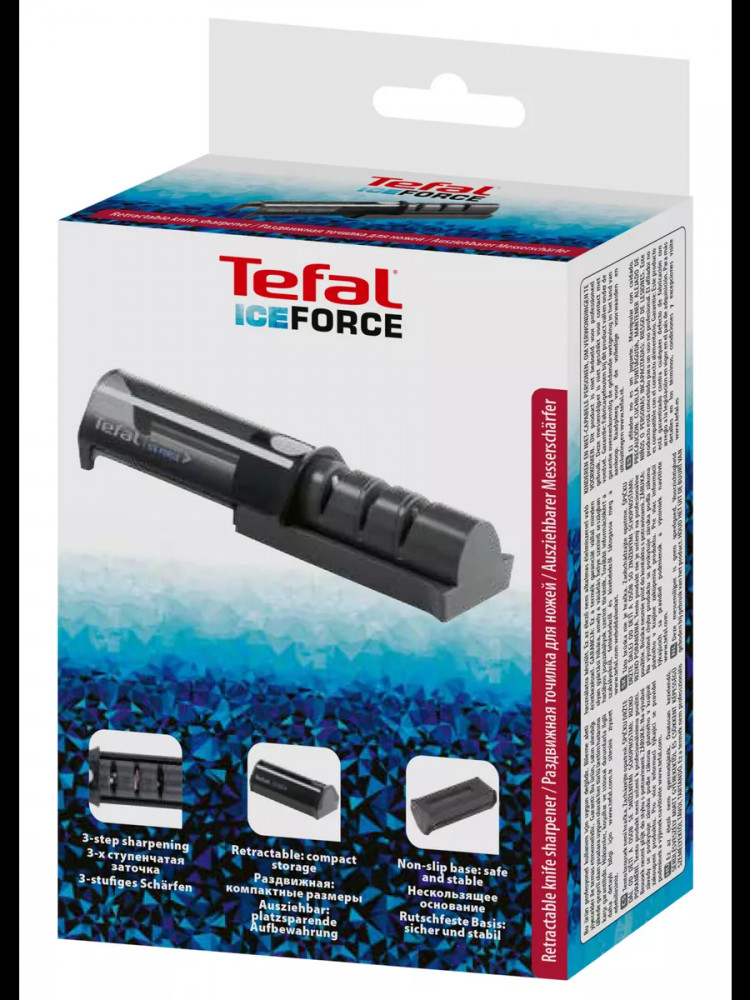 Благодаря продуманной конструкции прибор устойчиво стоит на столе, обеспечивая безопасность и удобство в использовании. Три прорези для обработки под разными углами адаптируются к различным типам ножей, оставляя после процесса идеальную остроту каждому из них. Покрытие рабочих поверхностей из алмазной крошки и керамики гарантирует быструю и эффективную заточку. В сложенном состоянии ножеточка Tefal занимает минимальное количество места, а специальная крышка надежно защищает точилку от пыли. Прибор отлично подходит для лезвий из нержавеющей стали и делает ее незаменимым аксессуаром для качественного ухода за вашими кухонными принадлежностями.
